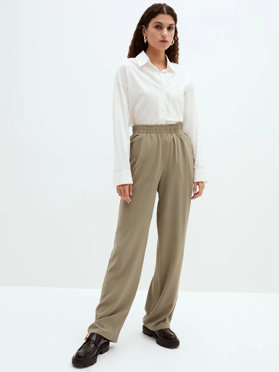Параметры: Застежка: резинка; Модель брюк: прямые; широкие; офисные; Тип карманов: потайные