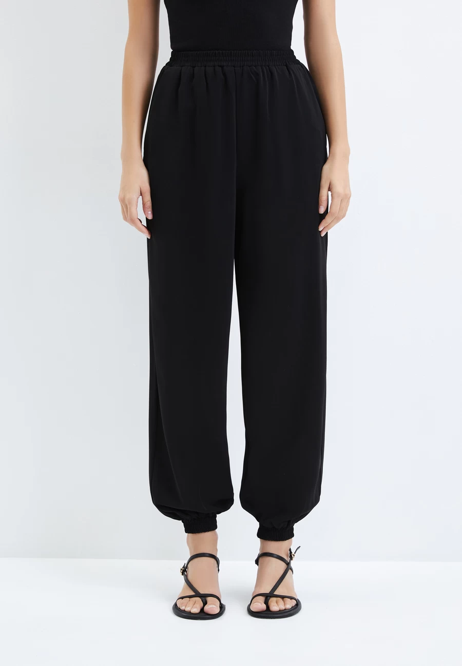 Параметры: Застежка: резинка; Модель брюк: зауженные; Тип карманов: потайные