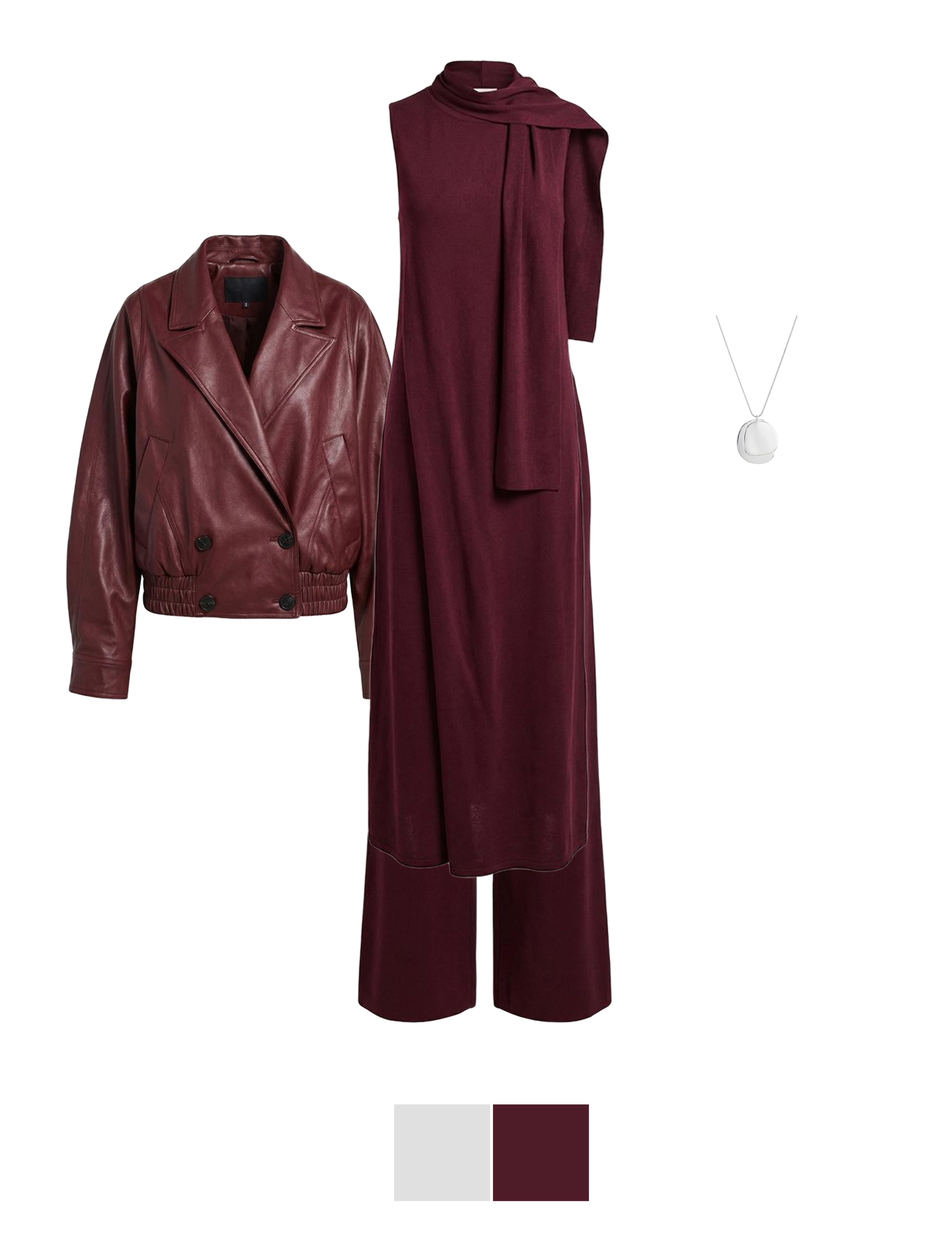 Монохромный образ — всегда беспроигрышный вариант. А винный оттенок сделает вас центром любого вечера
