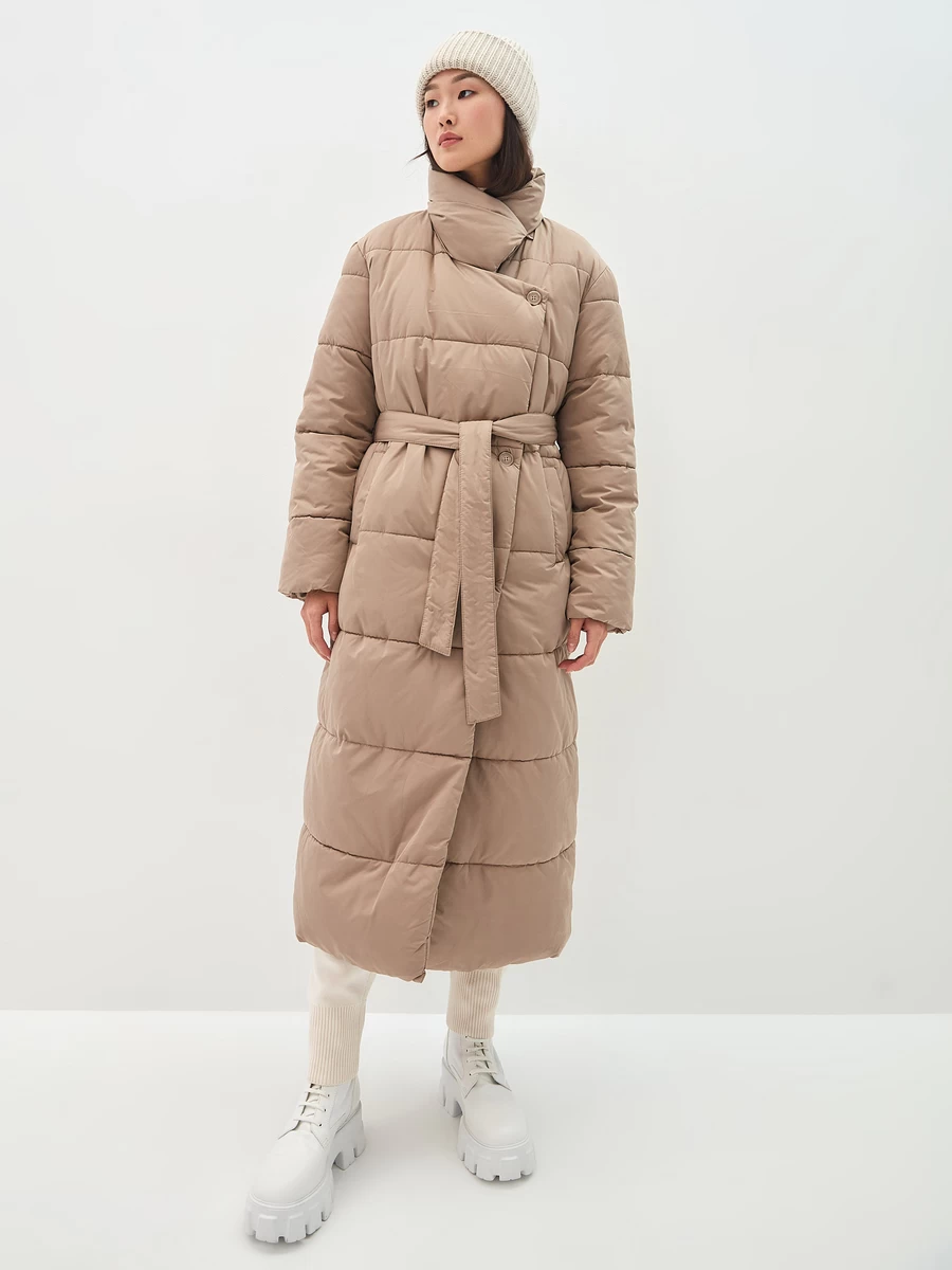 Параметры: Борты: смещенная застежка; Застежка: пуговицы; пояс; Опции капюшона: без капюшона; Температурный режим: до -20; Тип карманов: потайные; Утеплитель: биопух