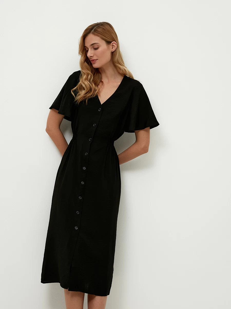 Параметры: Вырез горловины: V-образный; Застежка: пуговицы; Тип карманов: без карманов; Стиль: Повседневный