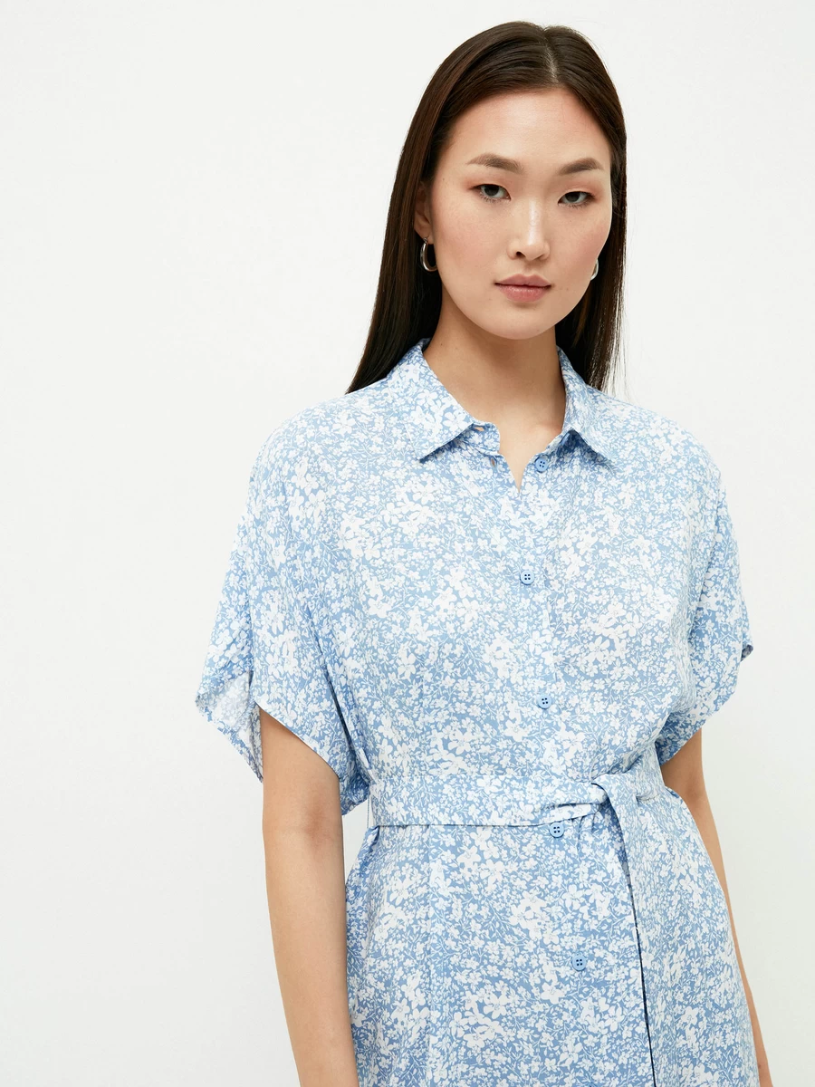 Параметры: Вырез горловины: отложной воротник; Застежка: пуговицы; пояс; Тип карманов: без карманов; Стиль: Повседневный