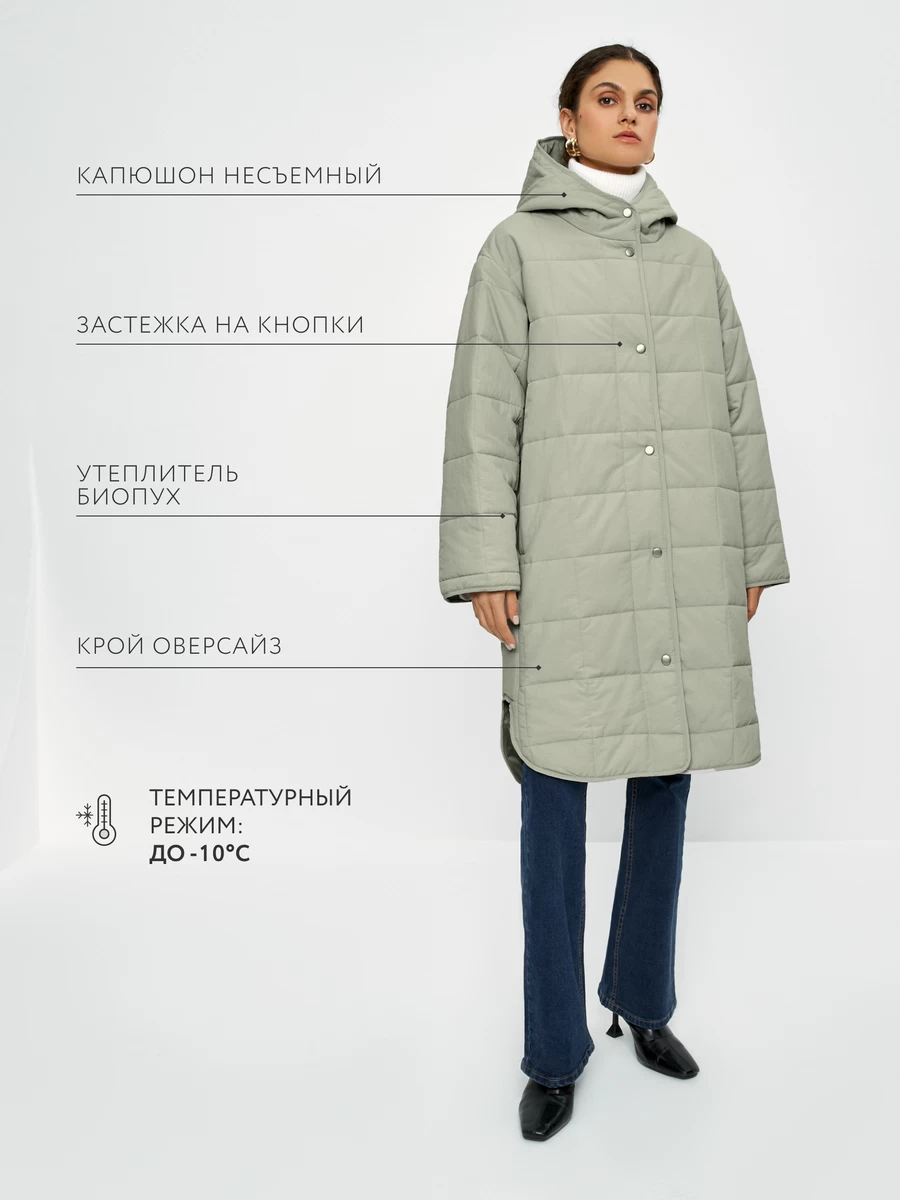 Параметры: Борты: однобортное; Застежка: кнопки; Опции капюшона: несъемный капюшон; Плотность утеплителя, ( на г/кв.м): 150; Температурный режим: до 0; Тип карманов: потайные; Утеплитель: синтепон