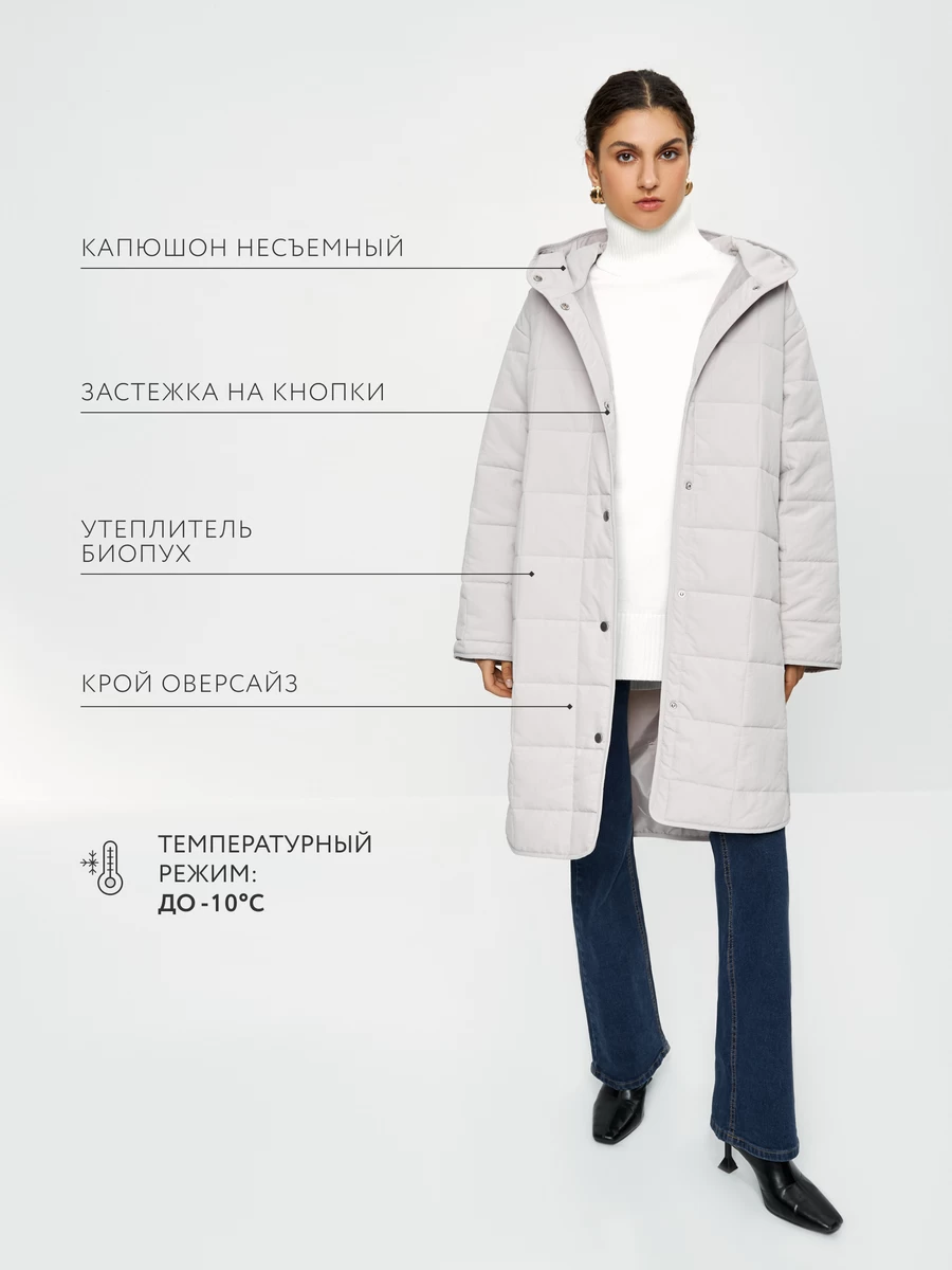 Параметры: Борты: однобортное; Застежка: кнопки; Опции капюшона: несъемный капюшон; Плотность утеплителя, ( на г/кв.м): 150; Температурный режим: до 0; Тип карманов: потайные; Утеплитель: синтепон