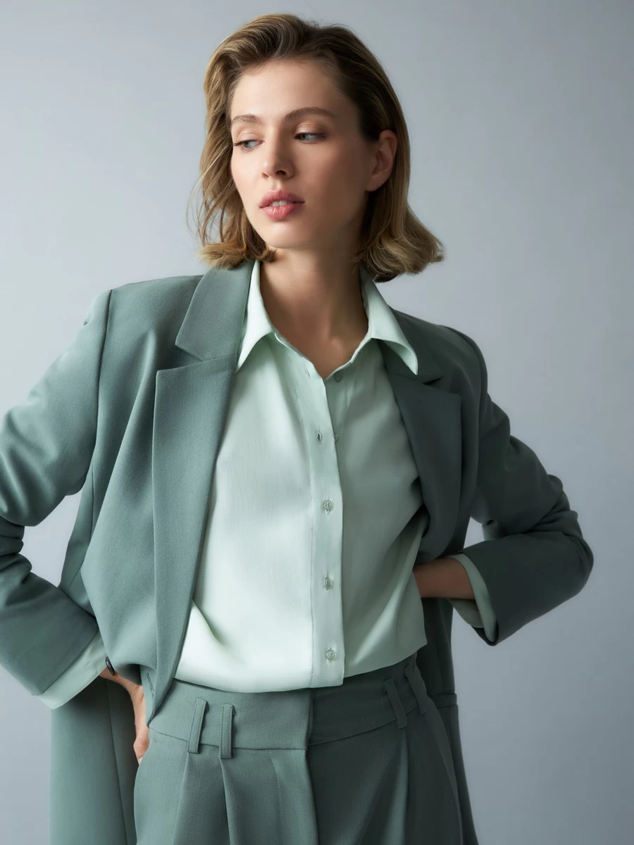 Параметры: Вырез горловины: округлый; отложной воротничок; Застежка: пуговицы; Наличие карманов: без карманов