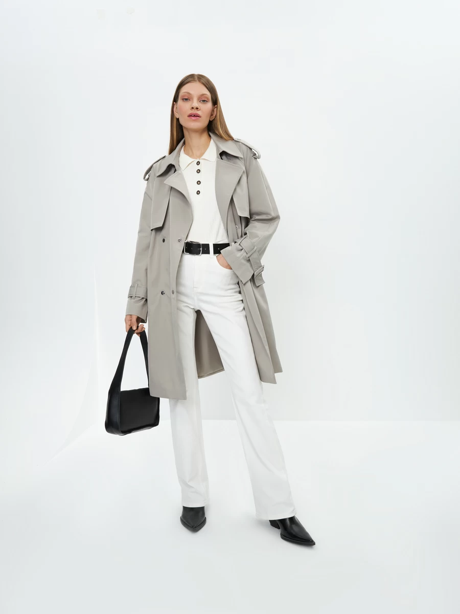 Параметры: Борты: двубортное; Застежка: кнопка; пояс; Опции капюшона: без капюшона; Температурный режим: от +10; Тип карманов: накладные; прорезные