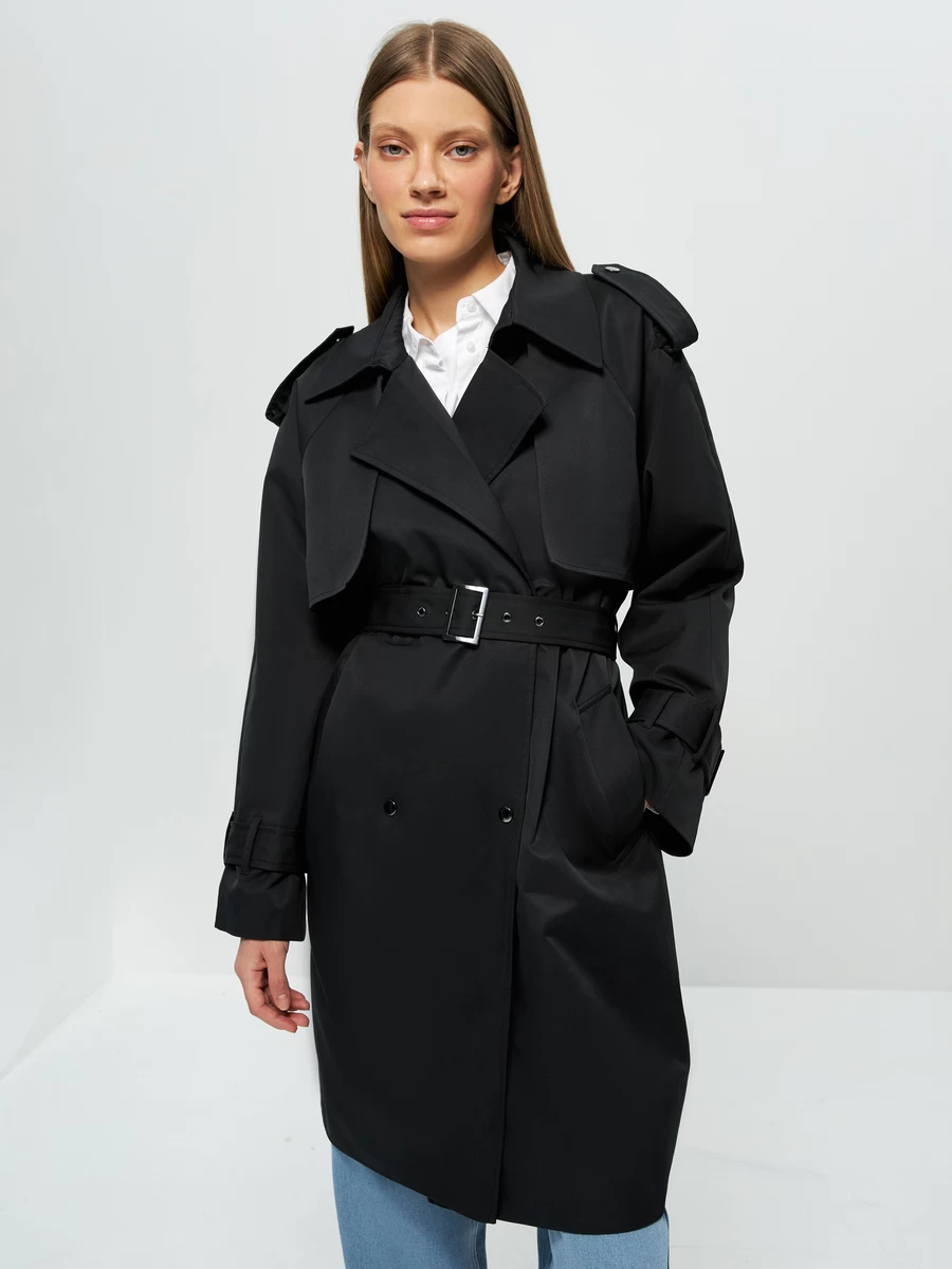 Параметры: Борты: двубортное; Застежка: кнопка; пояс; Опции капюшона: без капюшона; Температурный режим: от +10; Тип карманов: накладные; прорезные
