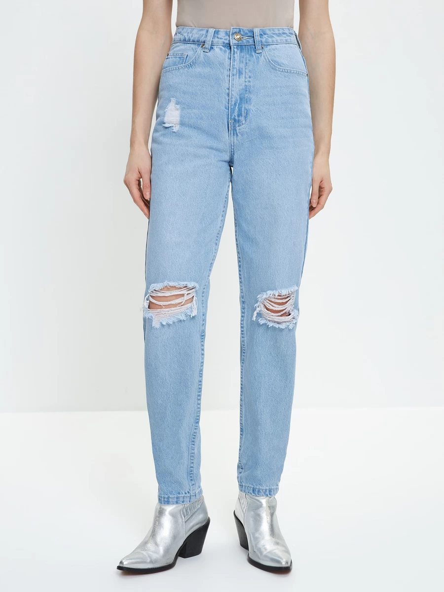 джинсы mom fit с разрывами