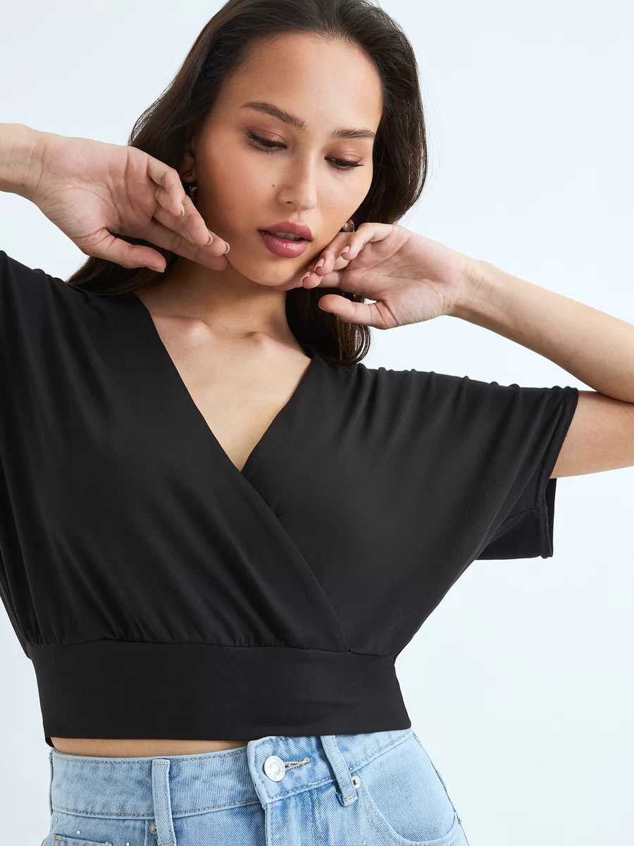 Параметры: Вырез горловины: V-образный; Застежка: без застежки; Наличие карманов: без карманов