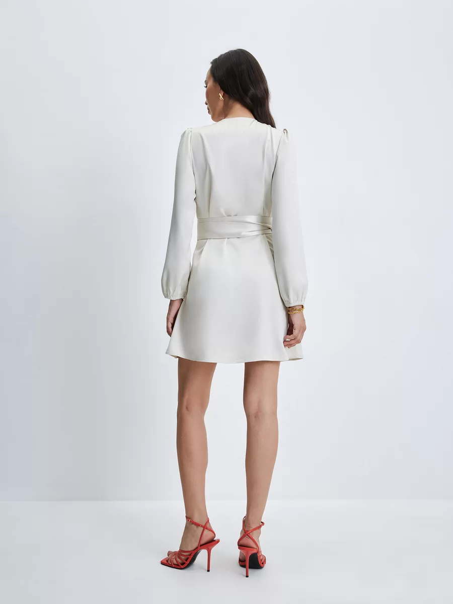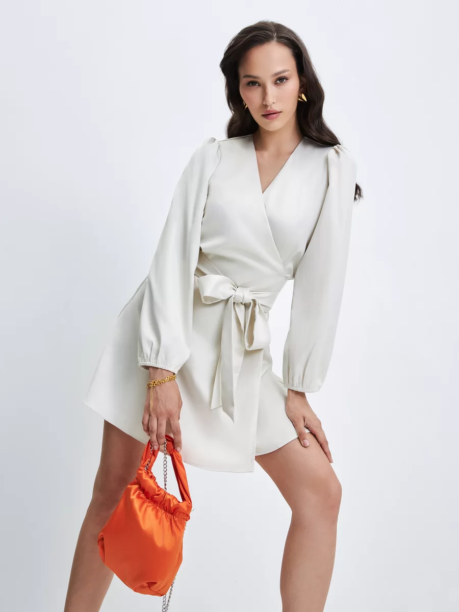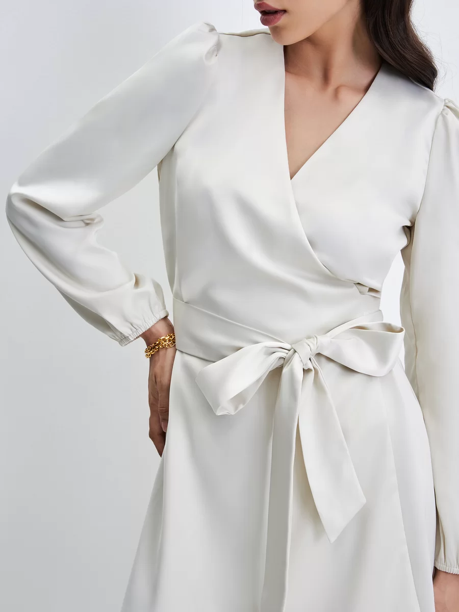 Параметры: Вырез горловины: V-образный; Застежка: пояс; Тип карманов: без карманов; Стиль: Деловой