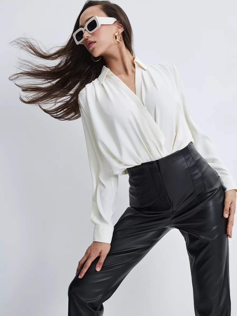 Параметры: Вырез горловины: V образный; отложной воротничок; Застежка: кнопка