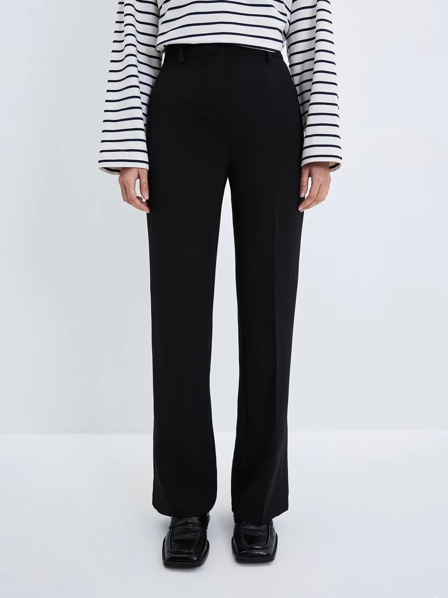Параметры: Застежка: молния; Модель брюк: офисные; расклешенные; Тип карманов: без карманов