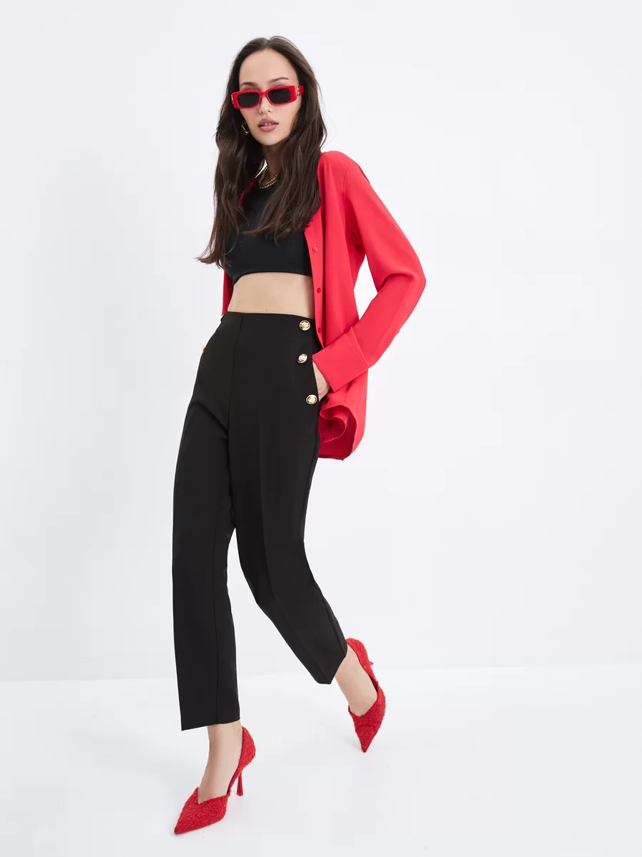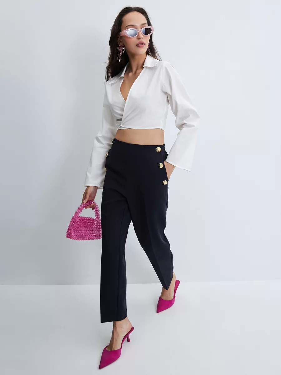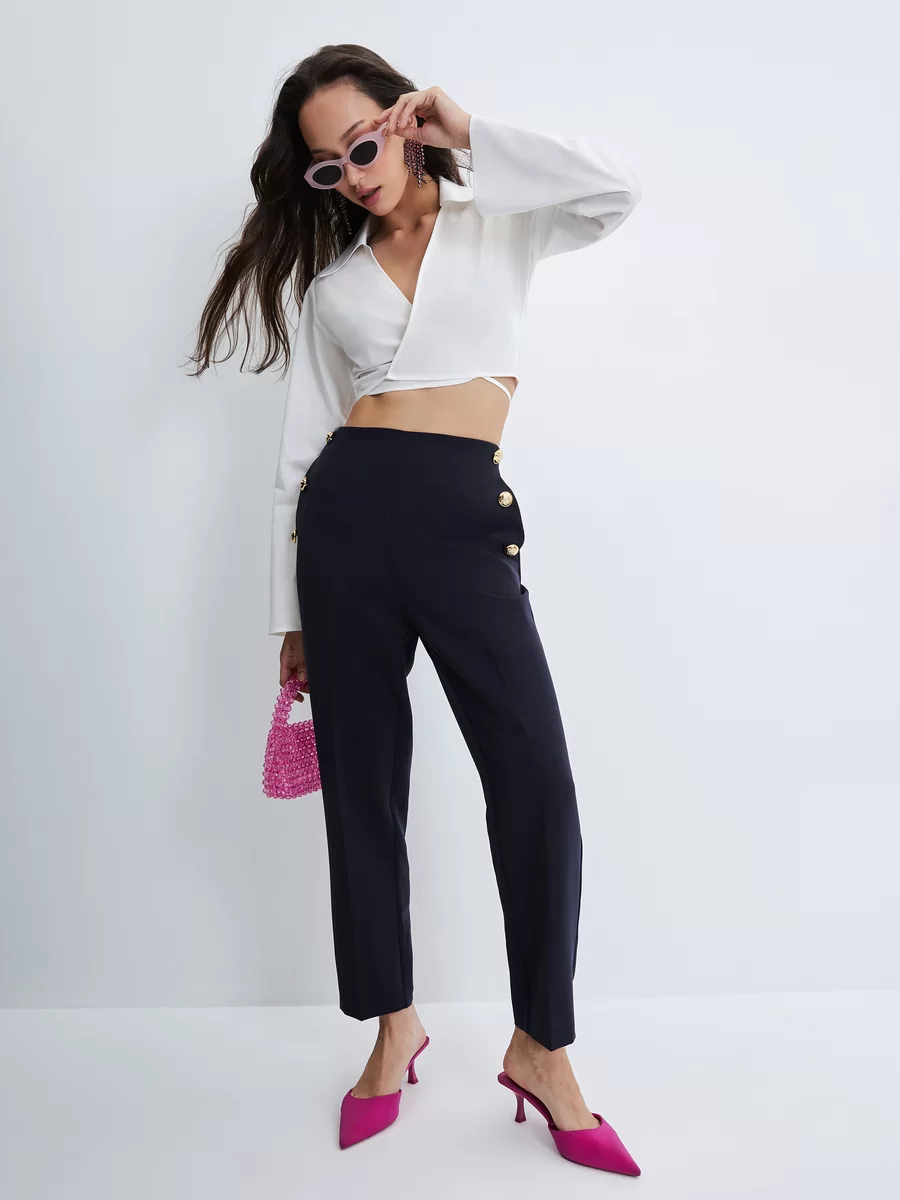 Параметры: Застежка: без застежки; Модель брюк: зауженные; Тип карманов: с отрезным бочком