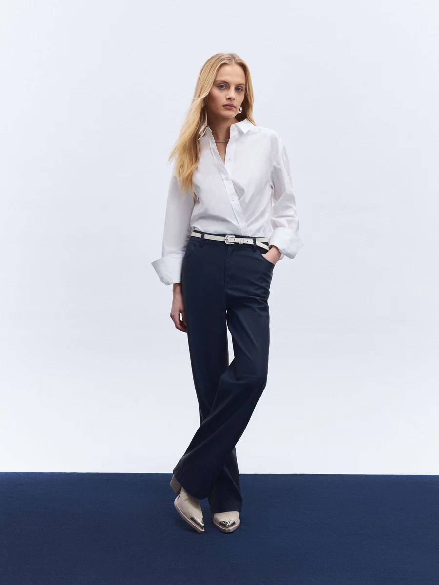 Параметры: Застежка: молния; пуговицы; Модель брюк: прямые; Тип карманов: с отрезным бочком; накладные