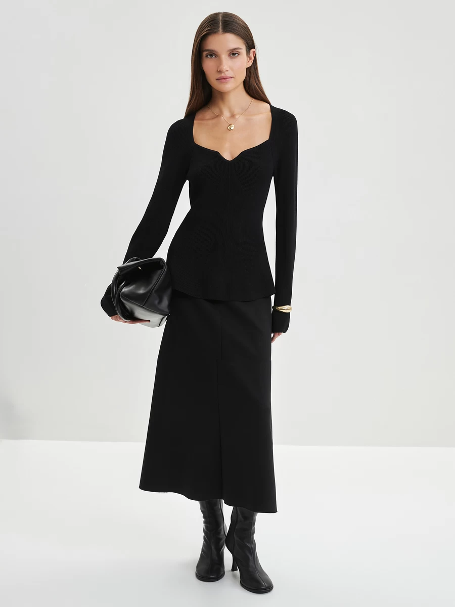 Джемпер в риб с треугольным вырезом