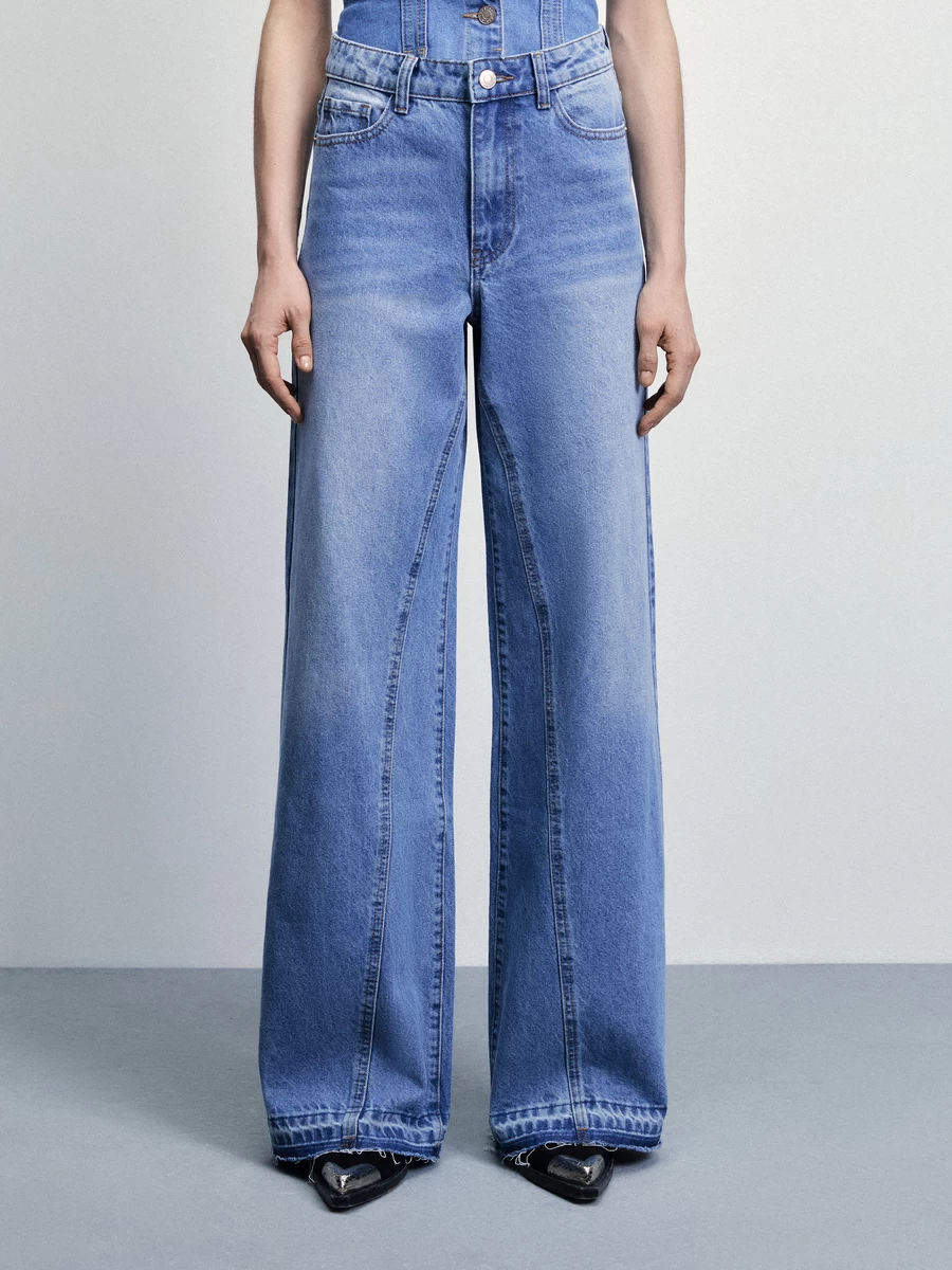 Параметры: Модель джинс: широкие; Тип посадки: middle; Материал (деним): без эластана; Модель джинс на английском: wide