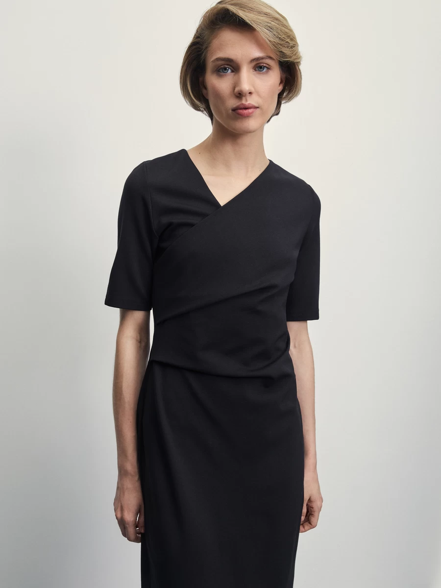 Параметры: Вырез горловины: асимметричный; Тип карманов: без карманов; Стиль: Повседневный; Тип рукава: короткие