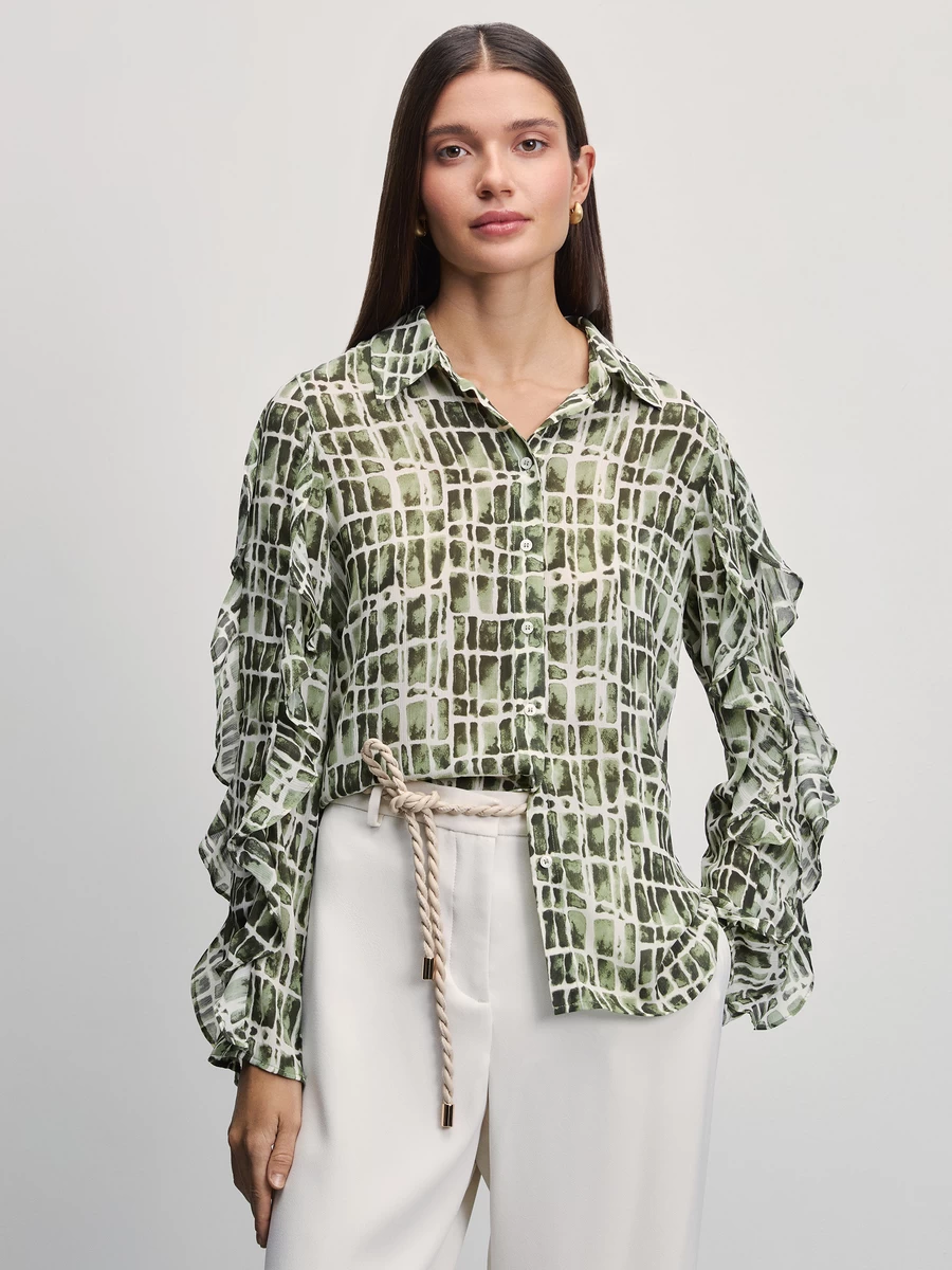 Параметры: Вырез горловины: отложной воротник; Тип рукава: длинные