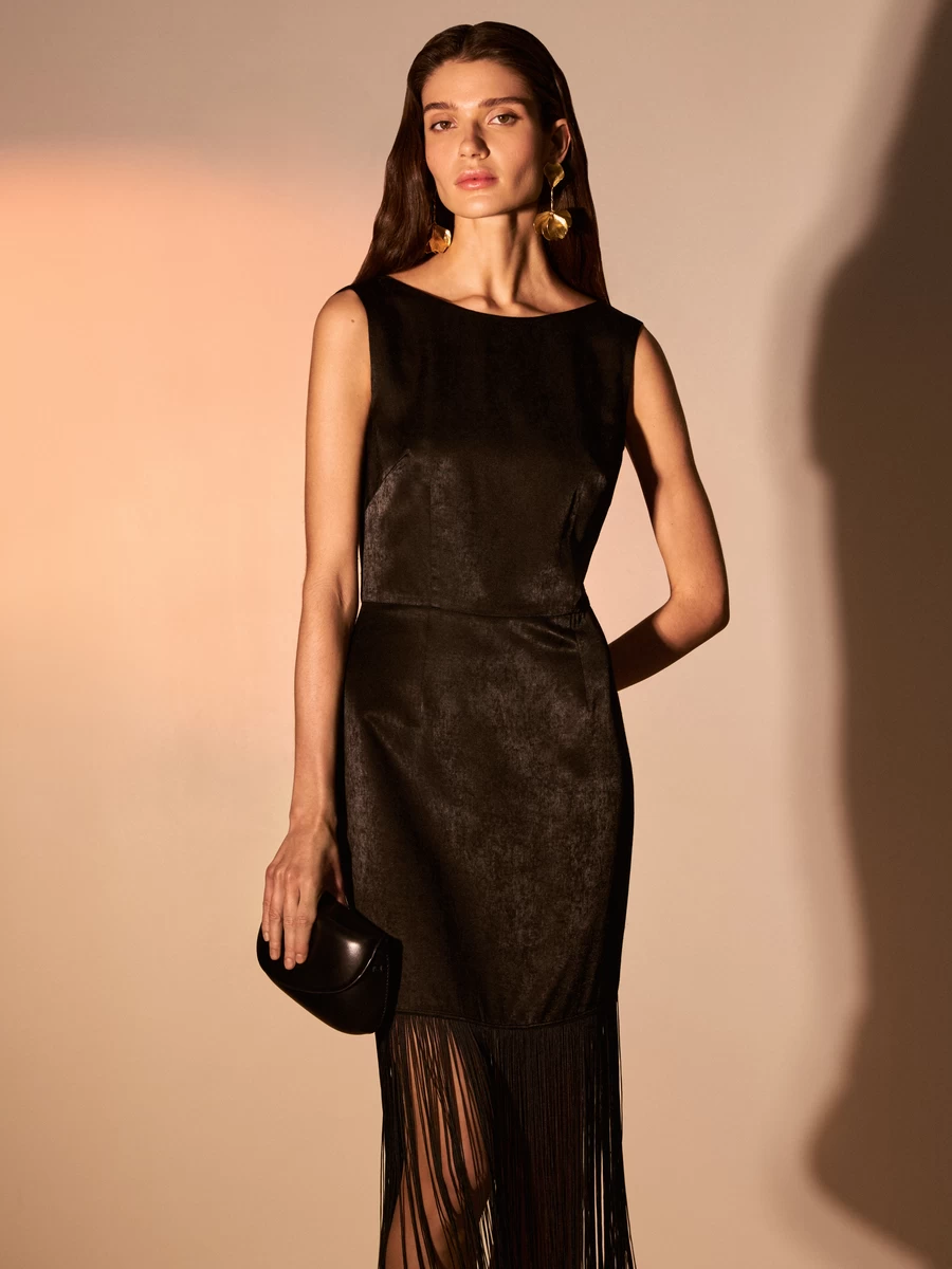 Параметры: Вырез горловины: лодочка; Тип карманов: без карманов; Стиль: Вечерний; Тип рукава: без рукава