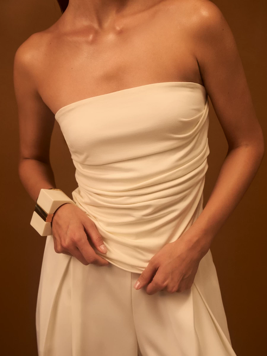Параметры: Вырез горловины: бандо; Тип рукава: без рукава