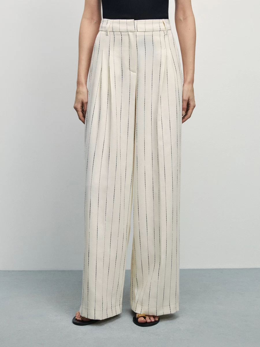 Параметры: Дата создания элемента справочника: 29.08.2023 14:56:37; Вид продукции: Поясные изделия; Классификация GPC: Брюки/Шорты; Вид застежки: молния; Декоративные элементы: нет; Модель брюк: широкие; Тип карманов: потайные; Рисунок: нет; Комплект: Casual_лето24_май_костюм3; Ручное изменение ставки НДС: Нет; Тип ростовки: для высоких; Маркетинговое наименование ZR: Брюки wide leg с защипами из льна; Фактура материала: текстильный; Тип посадки: средняя