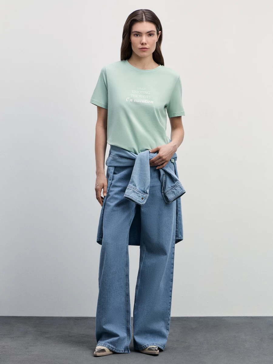 Футболка прямого кроя с принтом 4225515415-19 - купить в интернет-магазине «ZARINA»
