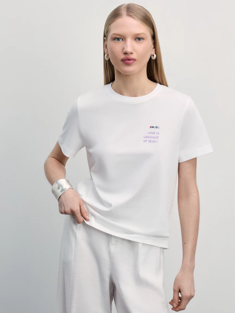 Футболка прямого кроя с принтом 4225528428-1 - купить в интернет-магазине «ZARINA»