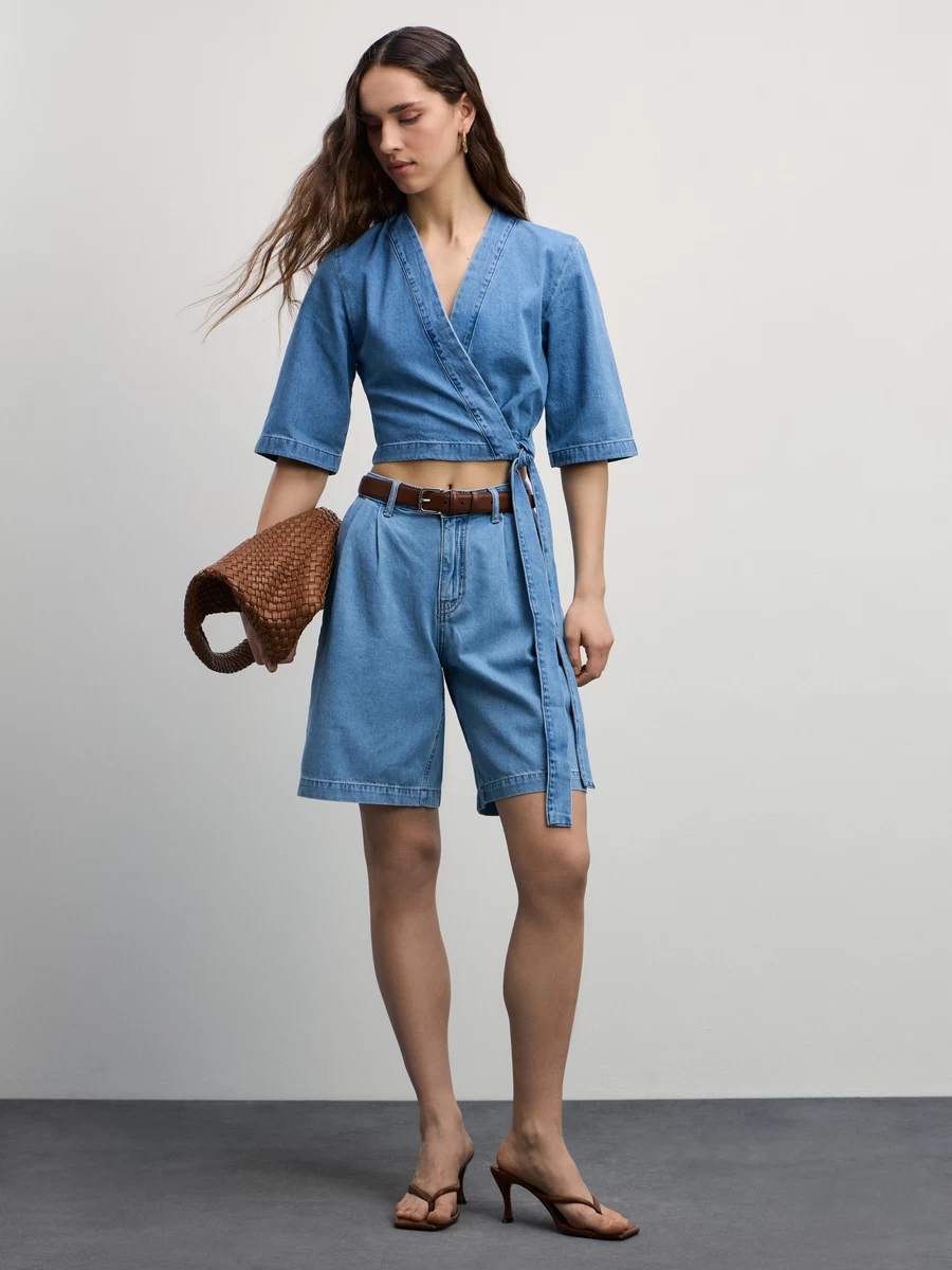 Джинсовые шорты со складками 4226471971-102 - купить в интернет-магазине «ZARINA»