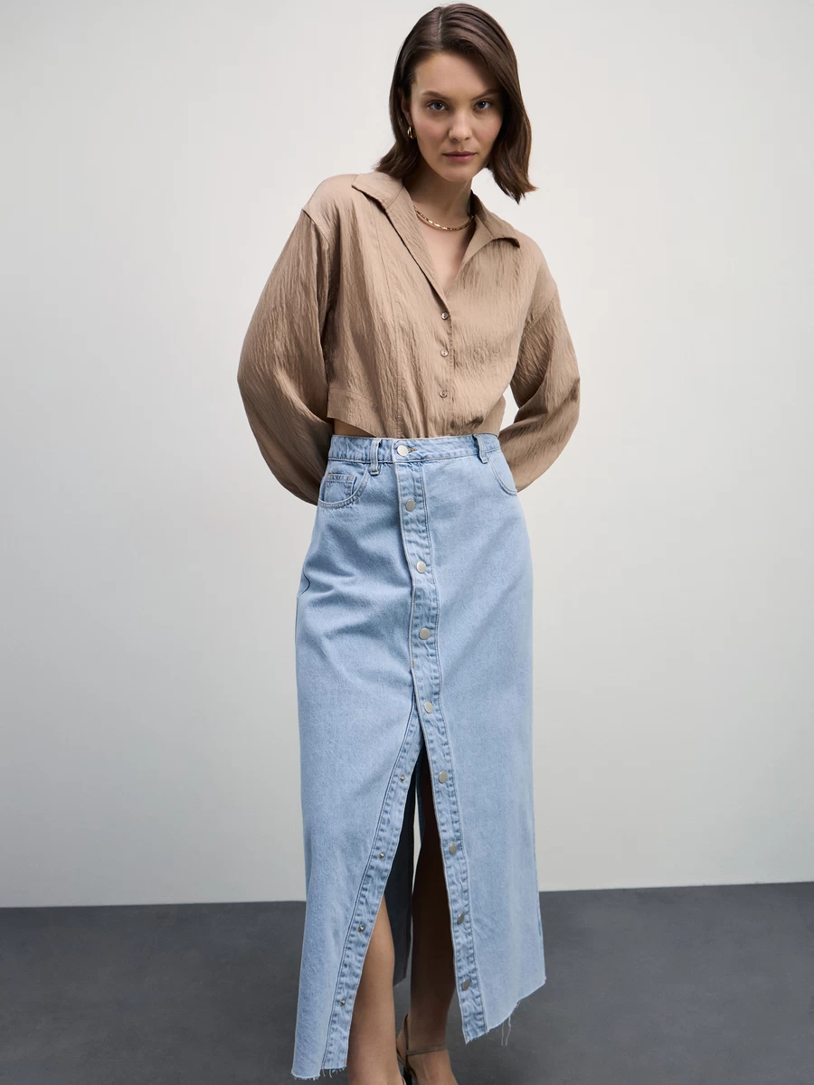 Параметры: Модель юбки: трапеция; Тип карманов: с отрезным бочком