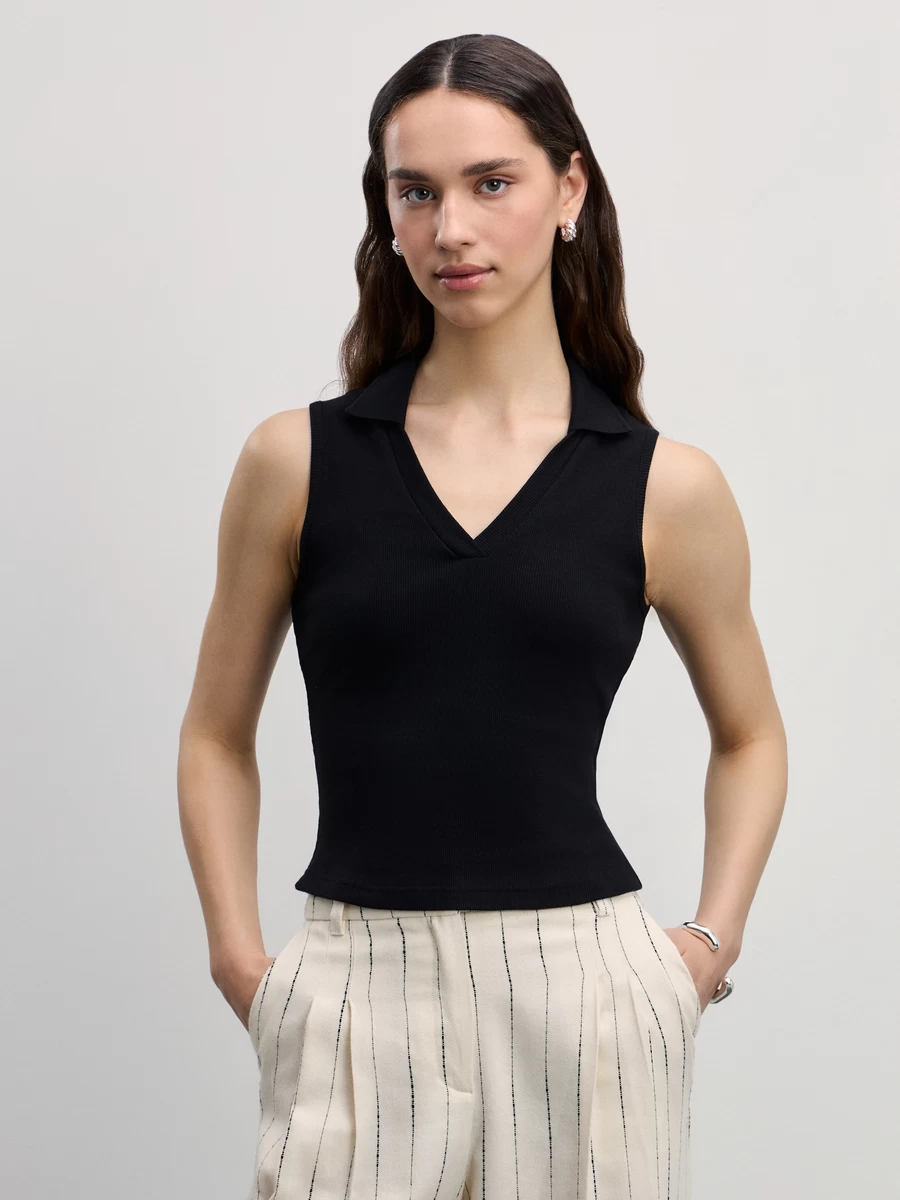 Параметры: Вырез горловины: V образный; отложной воротничок