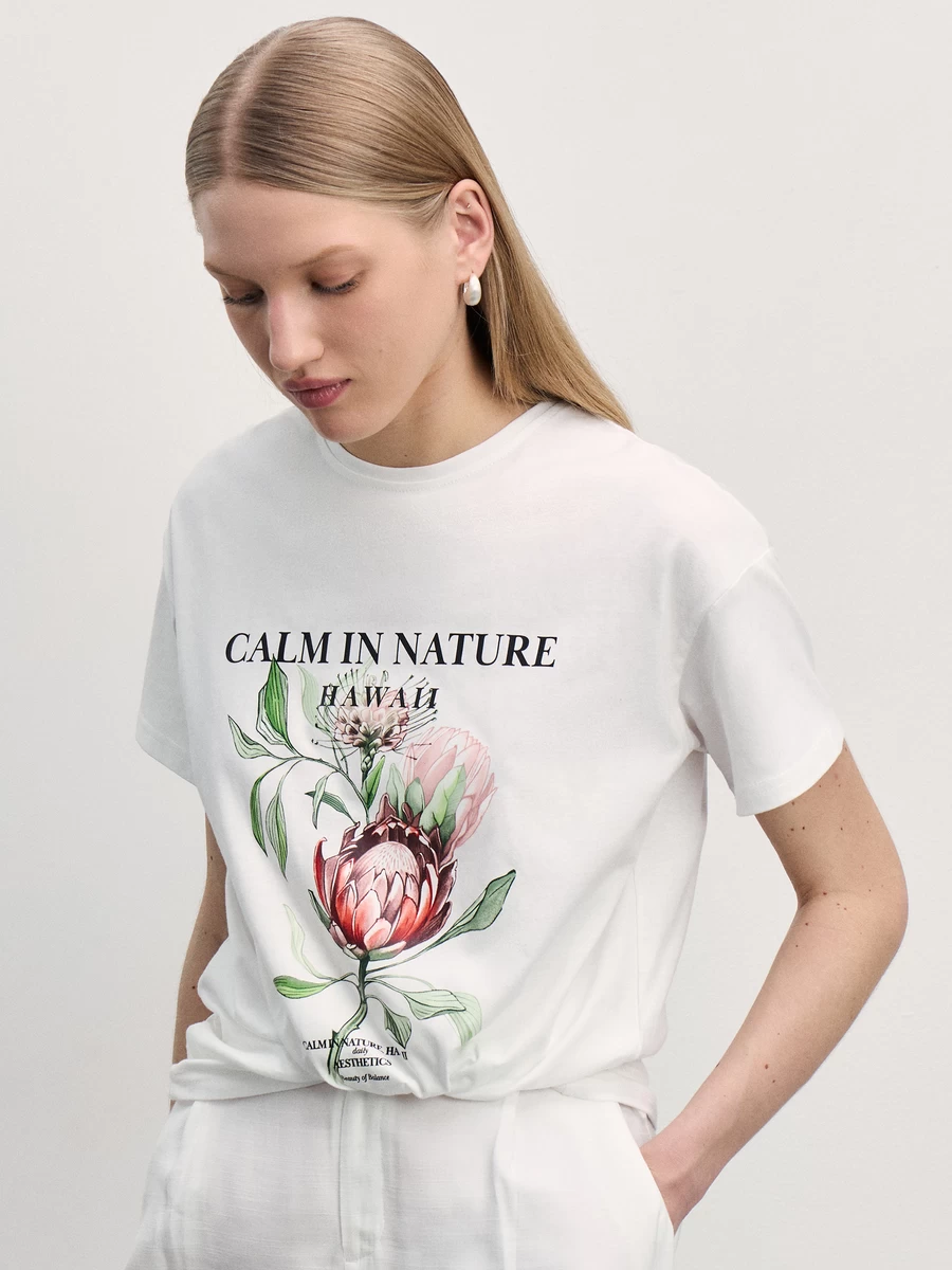 Футболка из хлопка с цветочным принтом