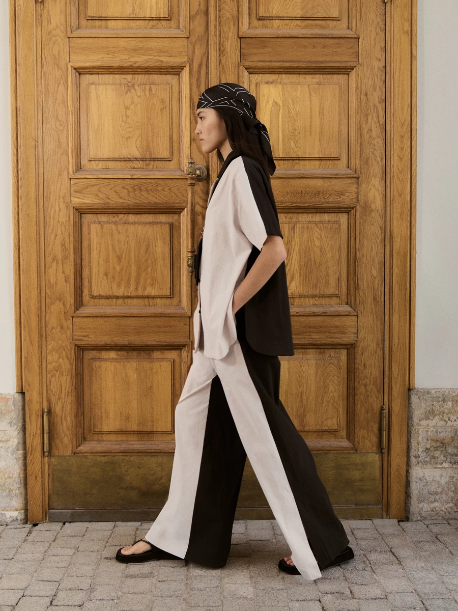 Параметры: Модель брюк: прямые; Тип карманов: в шве; Тип посадки: средняя