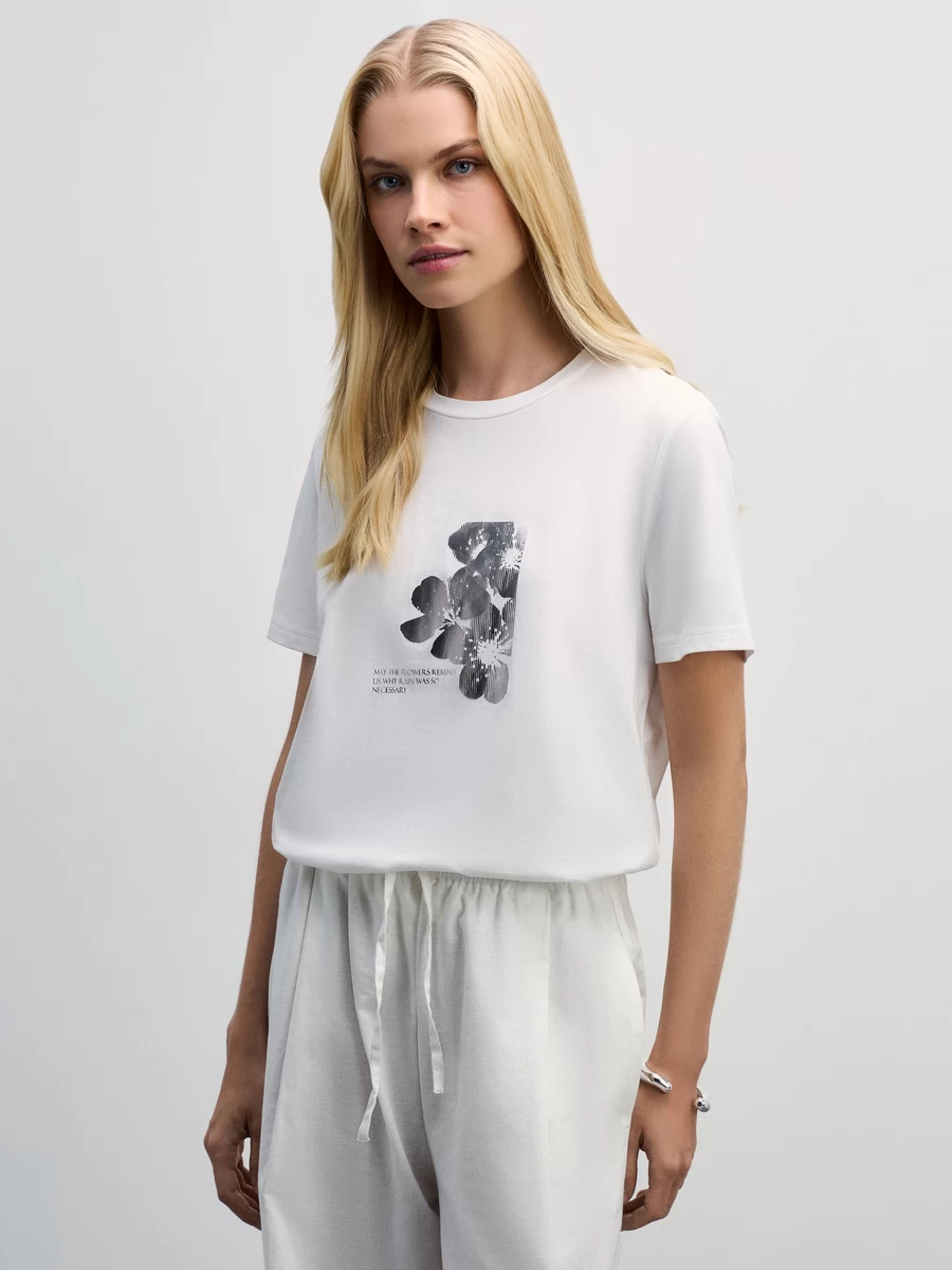 Базовая футболка из хлопка с принтом 4327510410-1 - купить в интернет-магазине «ZARINA»