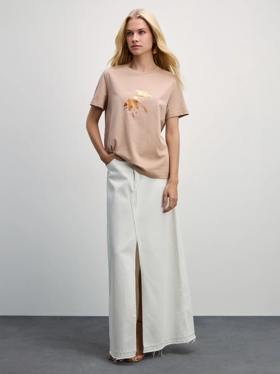 Базовая футболка из хлопка с принтом 4327510410-63 - купить в интернет-магазине «ZARINA»
