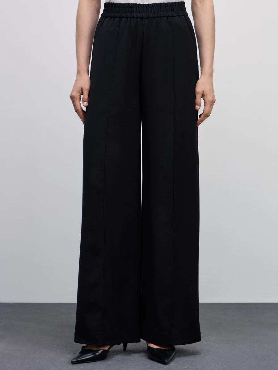 Параметры: Модель брюк: широкие; Тип карманов: с отрезным бочком; Тип посадки: средняя