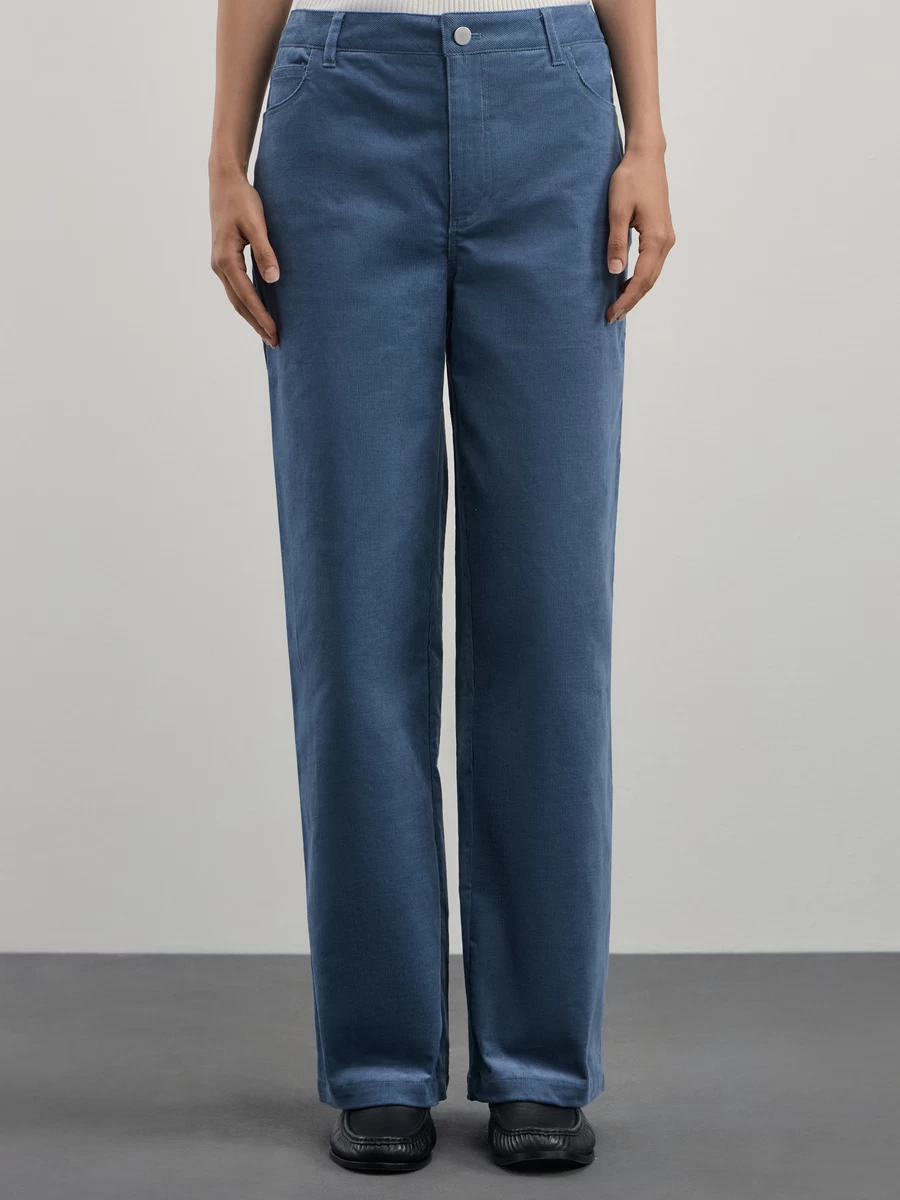 Параметры: Модель брюк: прямые; Тип карманов: с отрезным бочком; Тип посадки: средняя