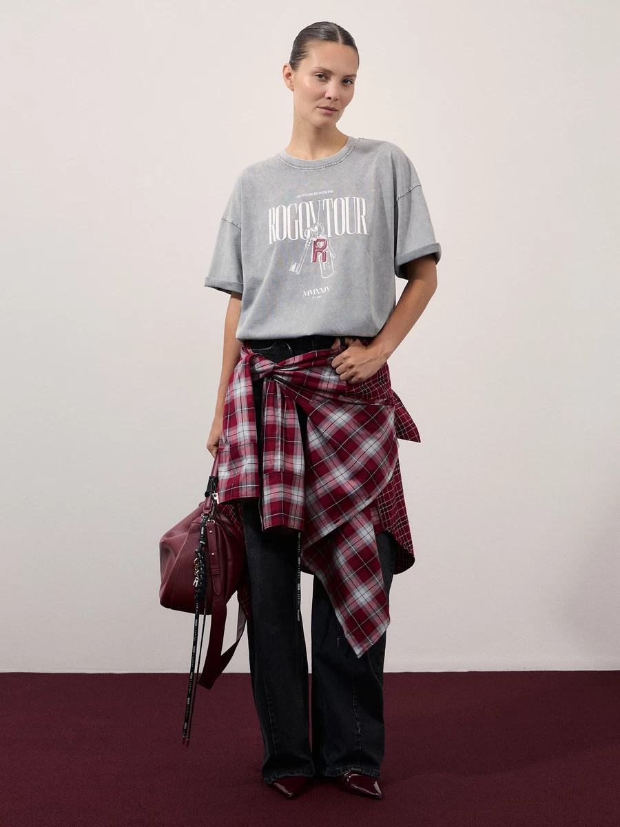 Оверсайз футболка с эффектом стирки и принтом 4329550460-32 - купить в интернет-магазине «ZARINA»
