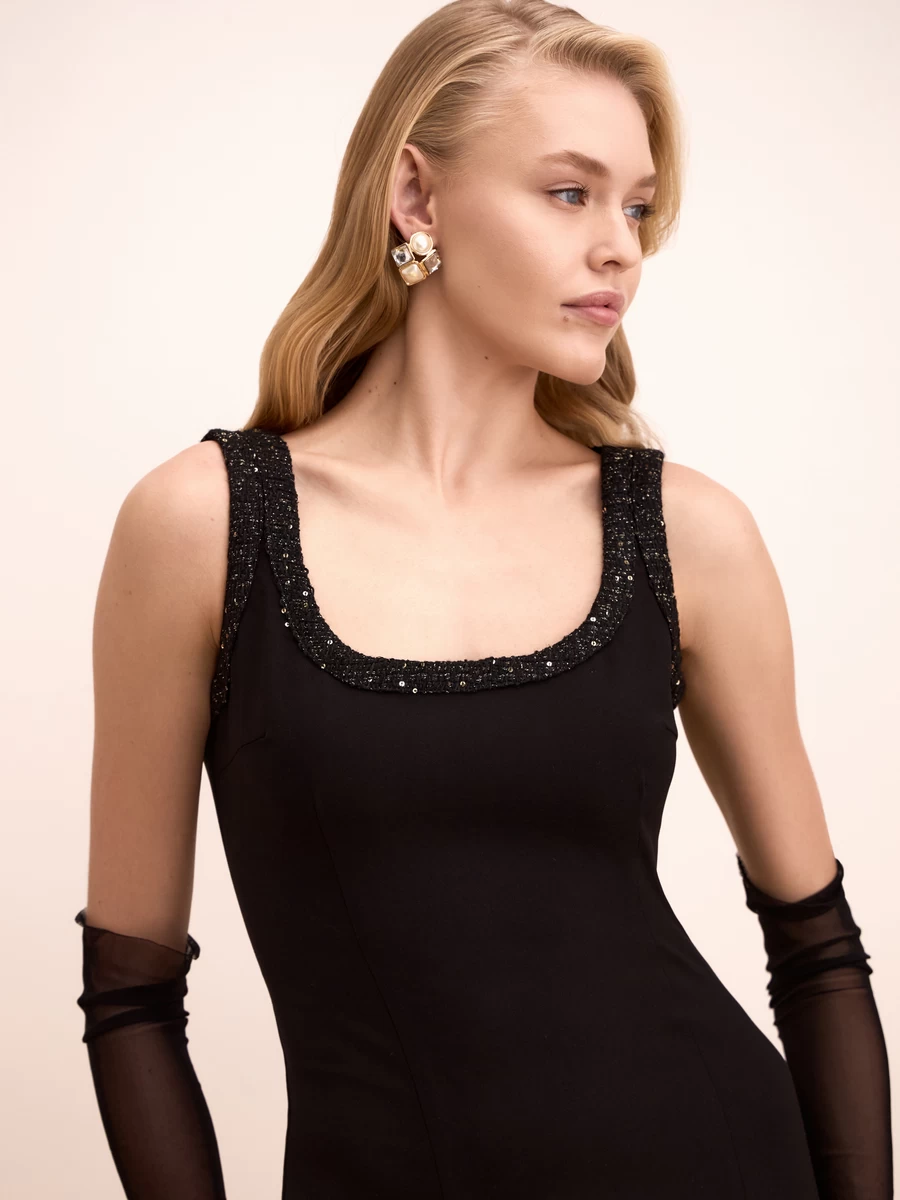 Параметры: Вырез горловины: U-образный; Тип карманов: без карманов; Стиль: Вечерний; Тип рукава: без рукава