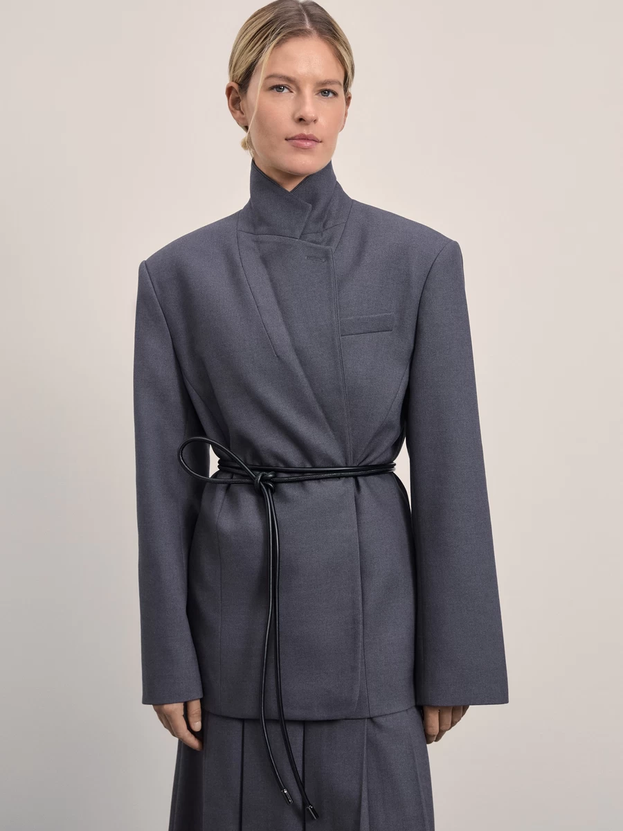 Приталенный жакет с декоративной пуговицей