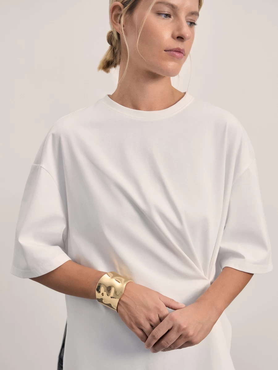 Футболка с декоративной брошью и драпировкой