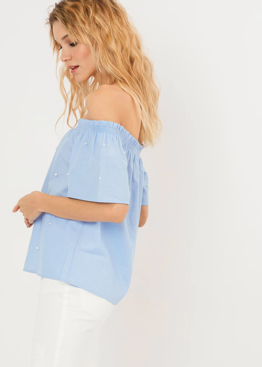 Блузка с открытыми плечами и бусинами