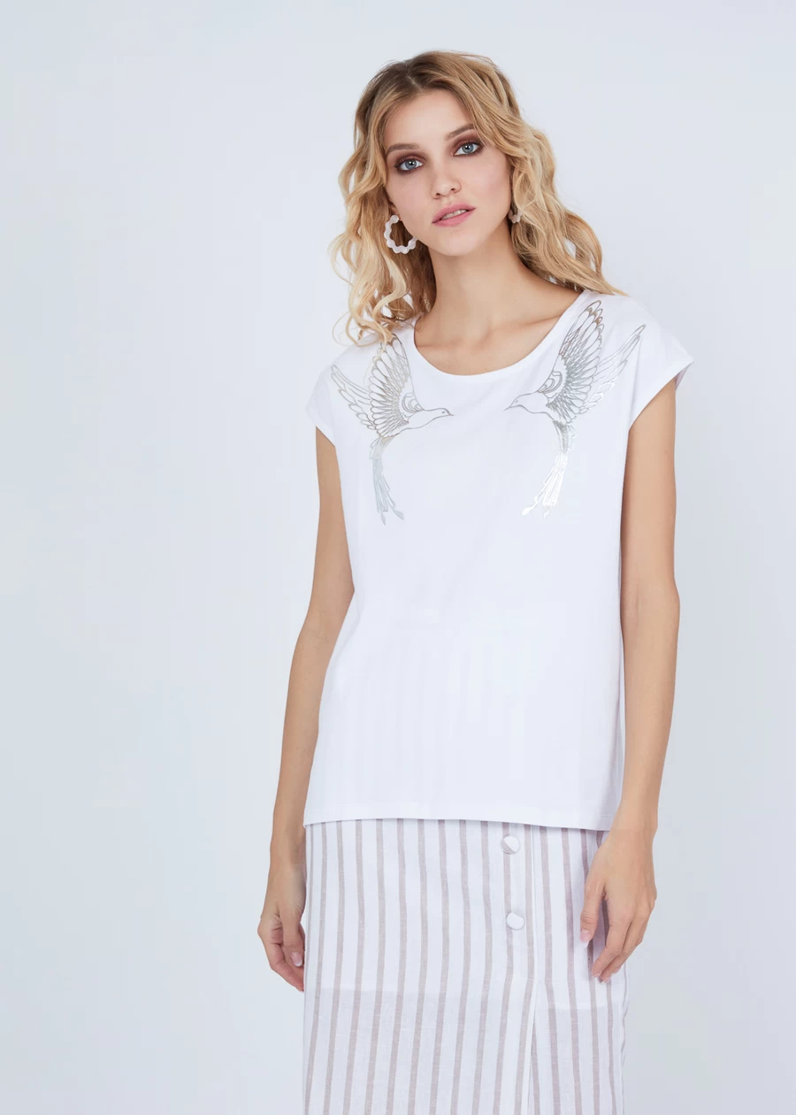 Футболка с принтом и декоративными кристаллами