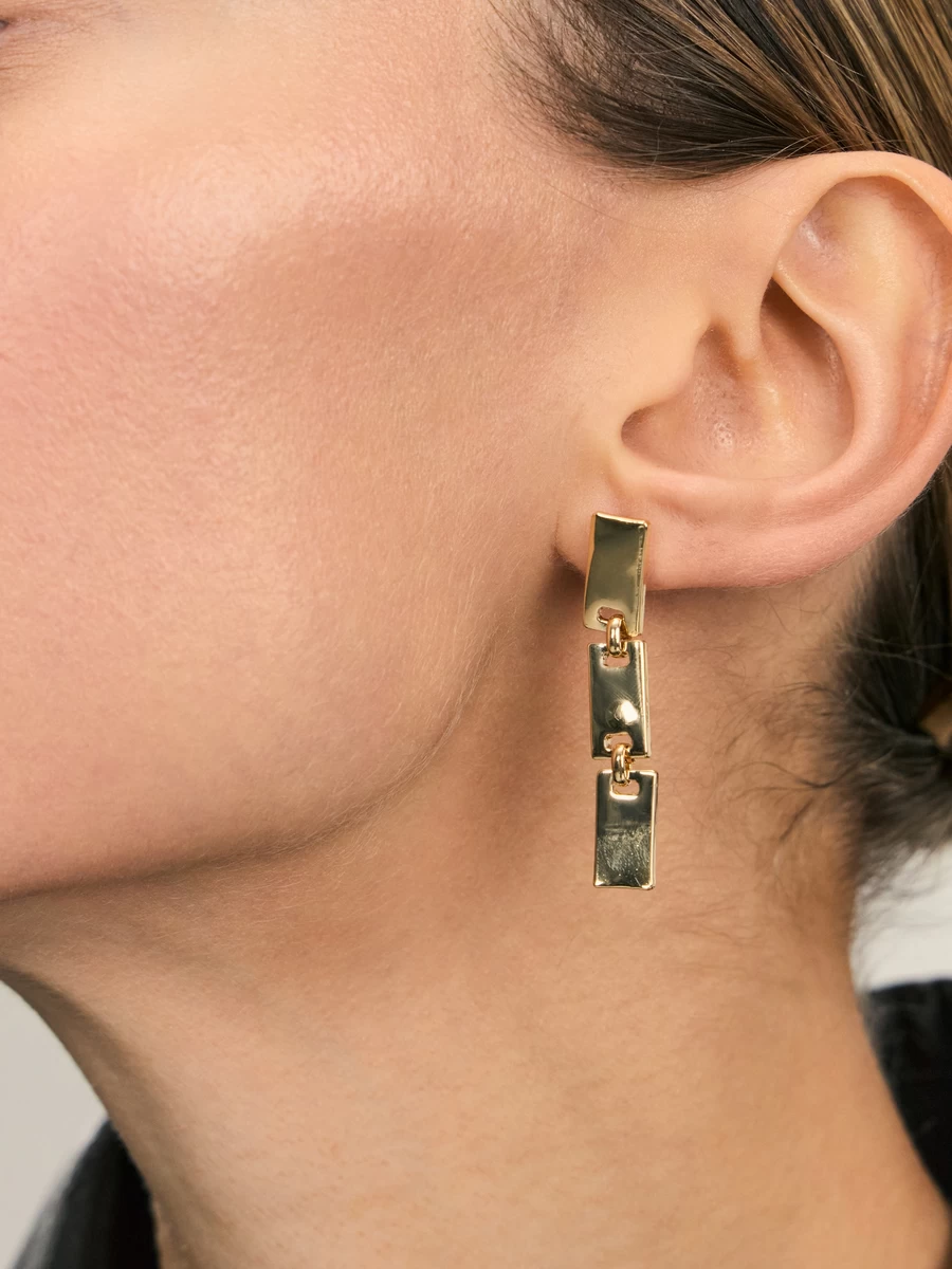 Серьги с плоскими прямоугольными звеньями