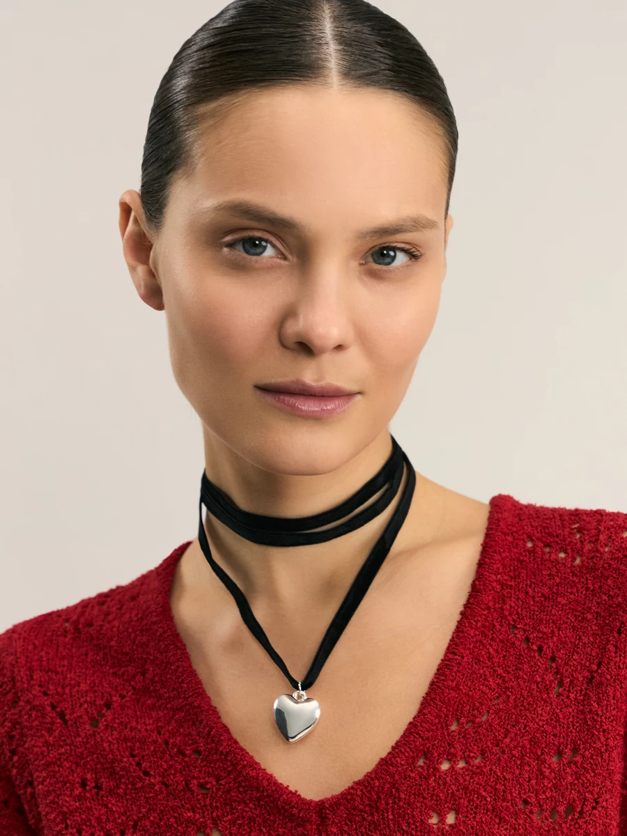 Украшение на шею бархатное с металлическим сердечком ZR2502060304-7 - купить в интернет-магазине «ZARINA»