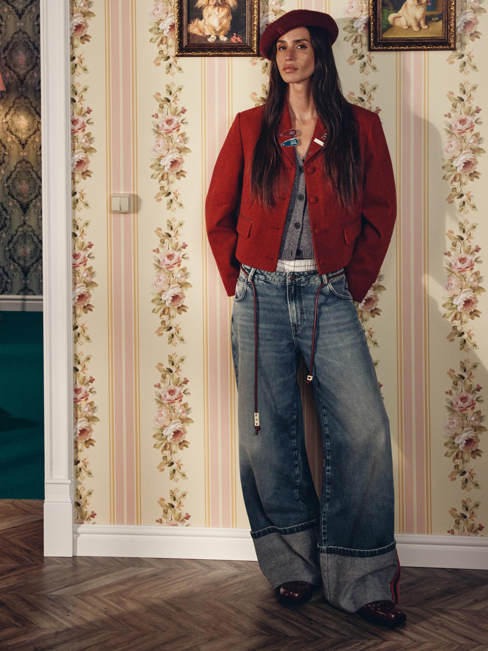 Джинсы широкие со средней посадкой с подворотами и декоративным поясом