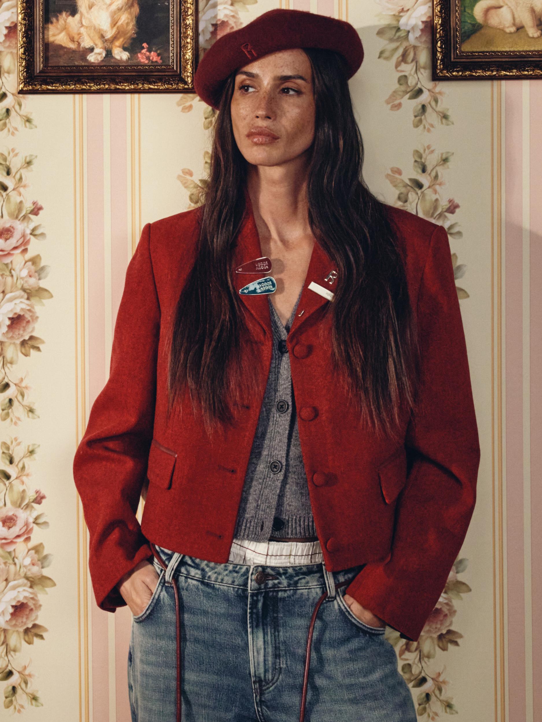 Укороченный твидовый жакет с брошью