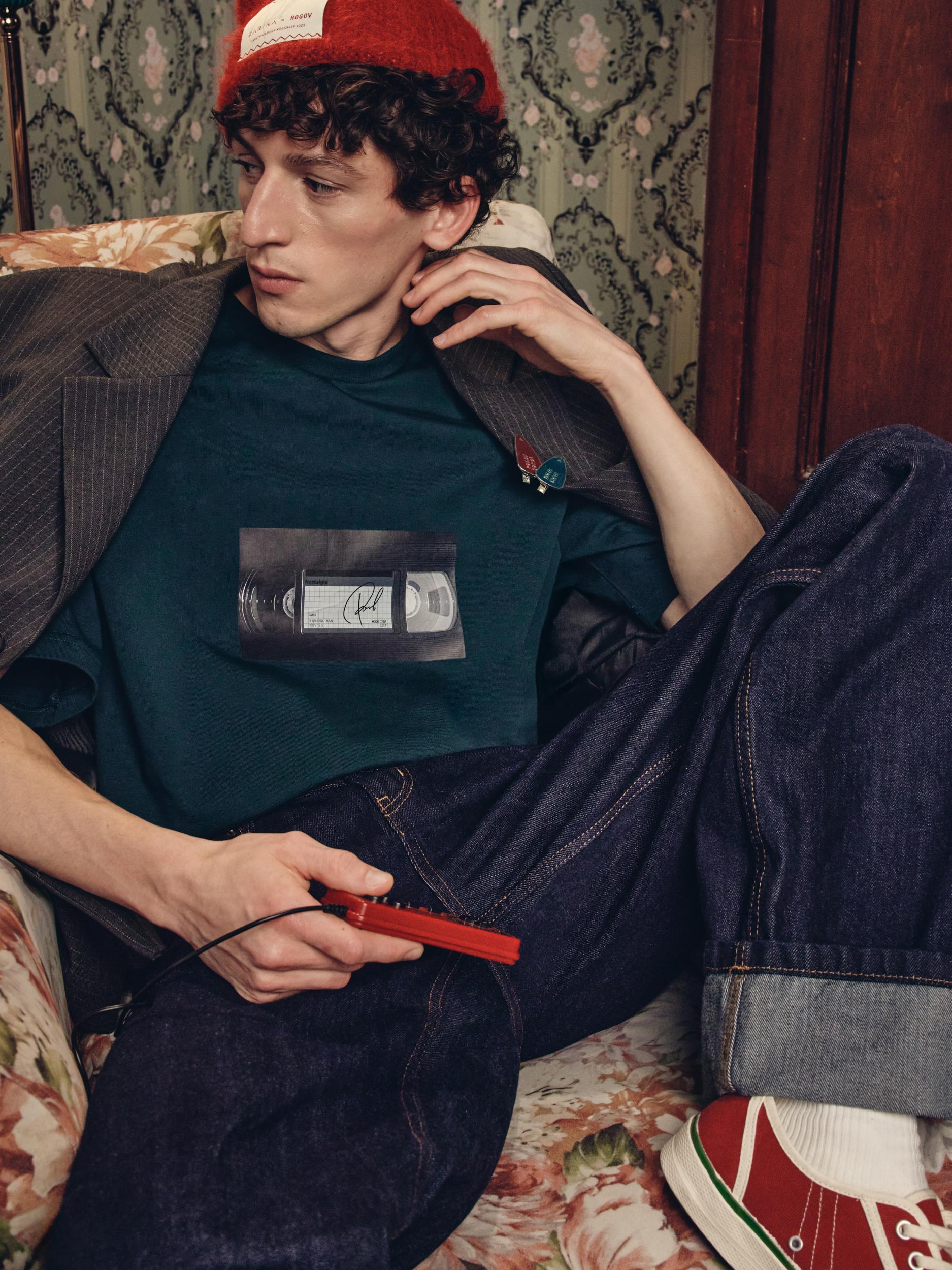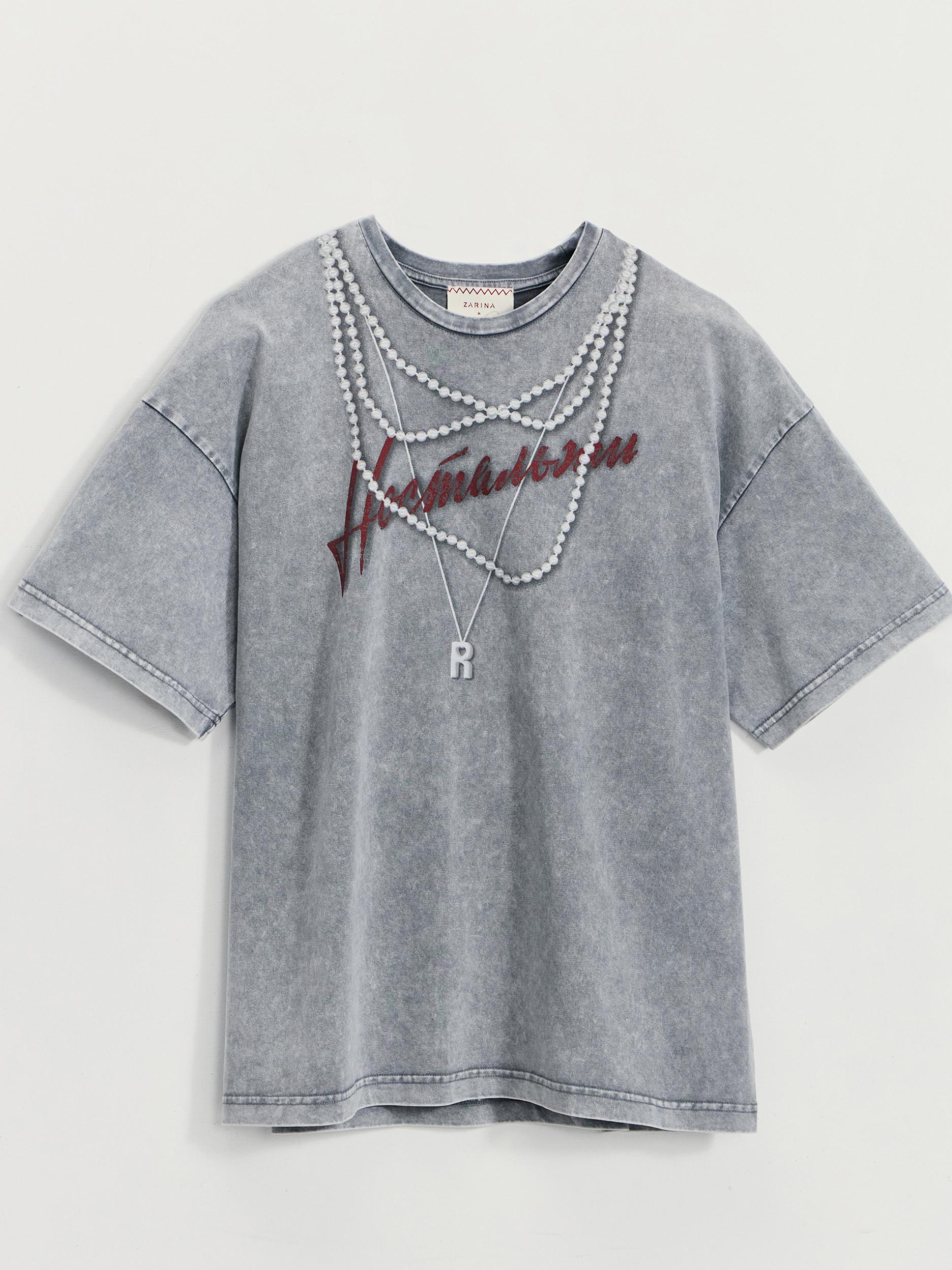 Футболка с эффектом стирки и принтом