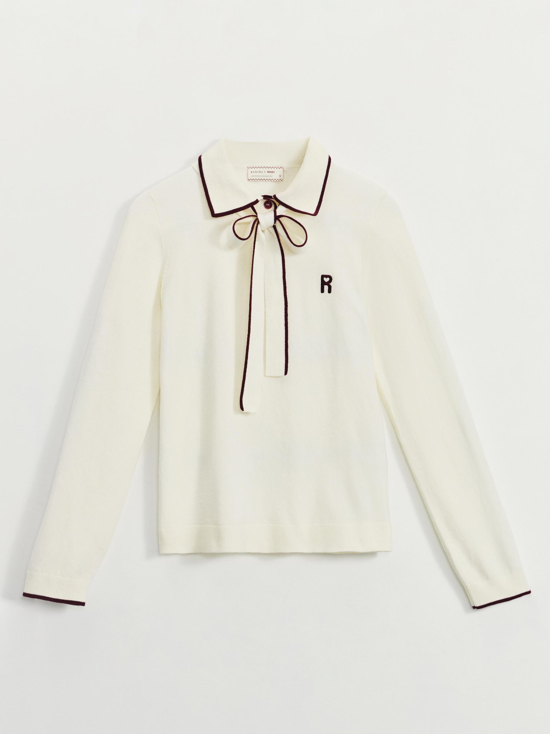 Вязаный джемпер с шарфом и вышивкой