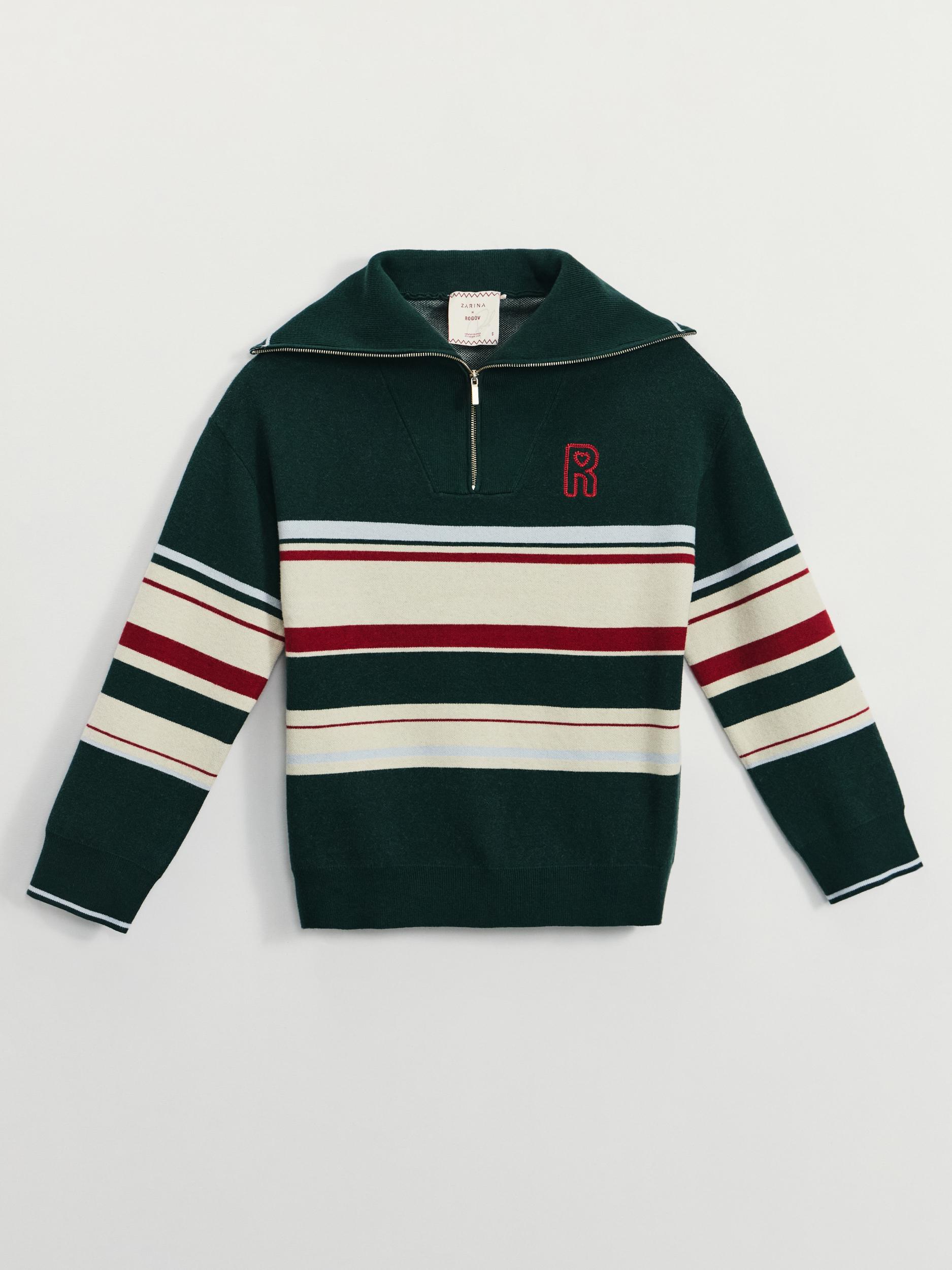 Джемпер в полоску с отложным воротником на молнии