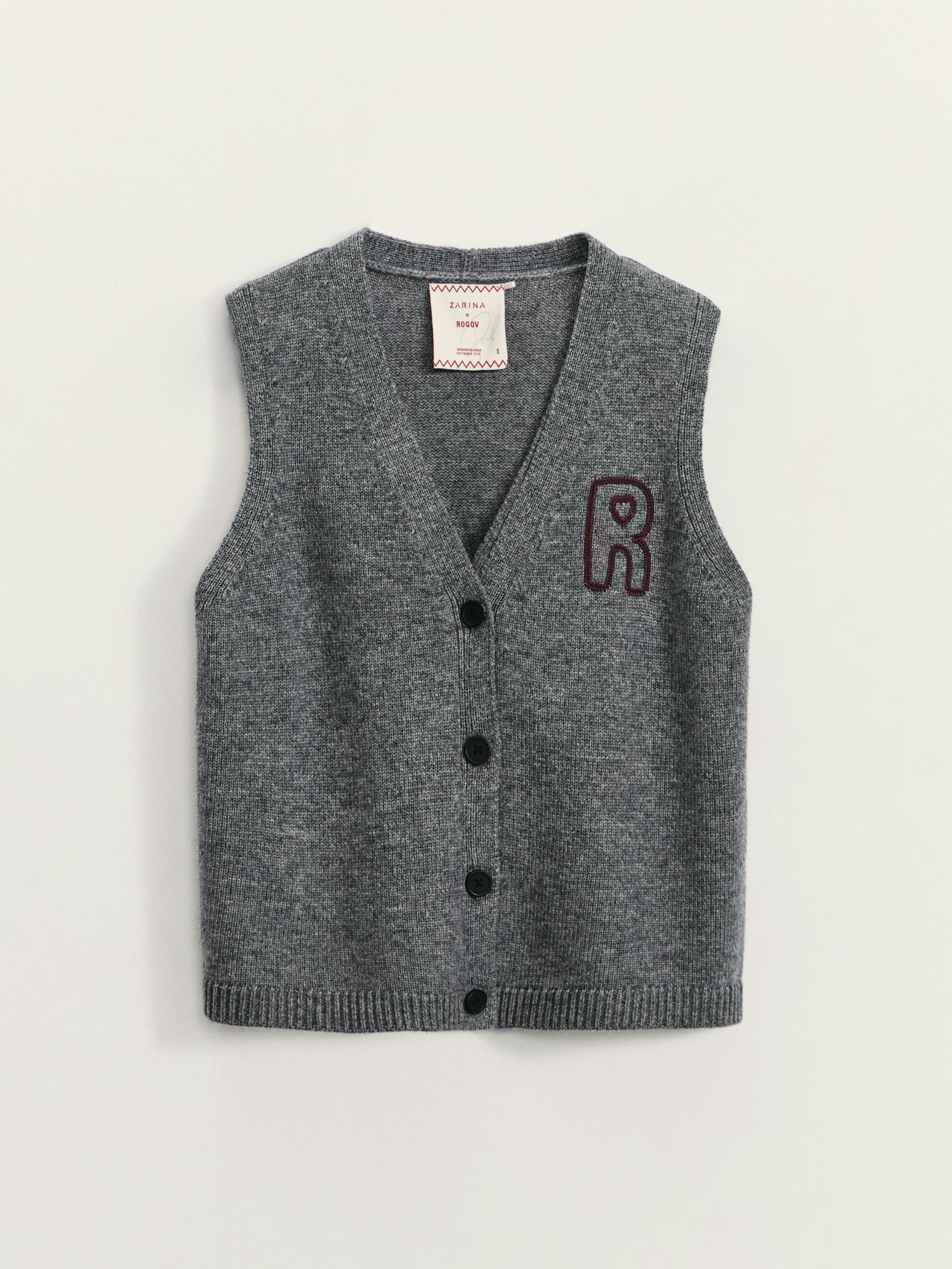 Полушерстяной вязаный жилет с вышивкой